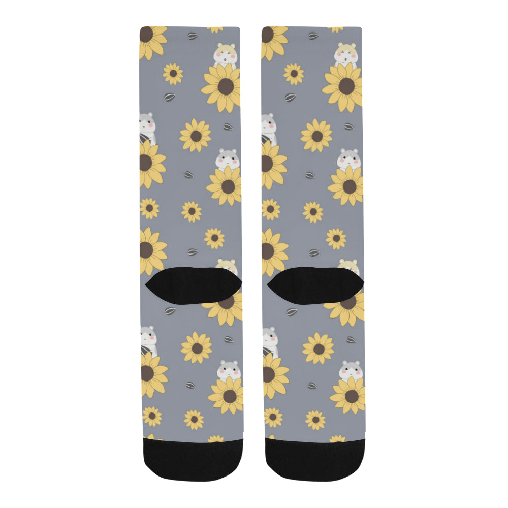 Cute hamster sunflower pattern background Crew Socks are uniqued design and limited item. It made to order, hand printed, and sewn with love in our factory.