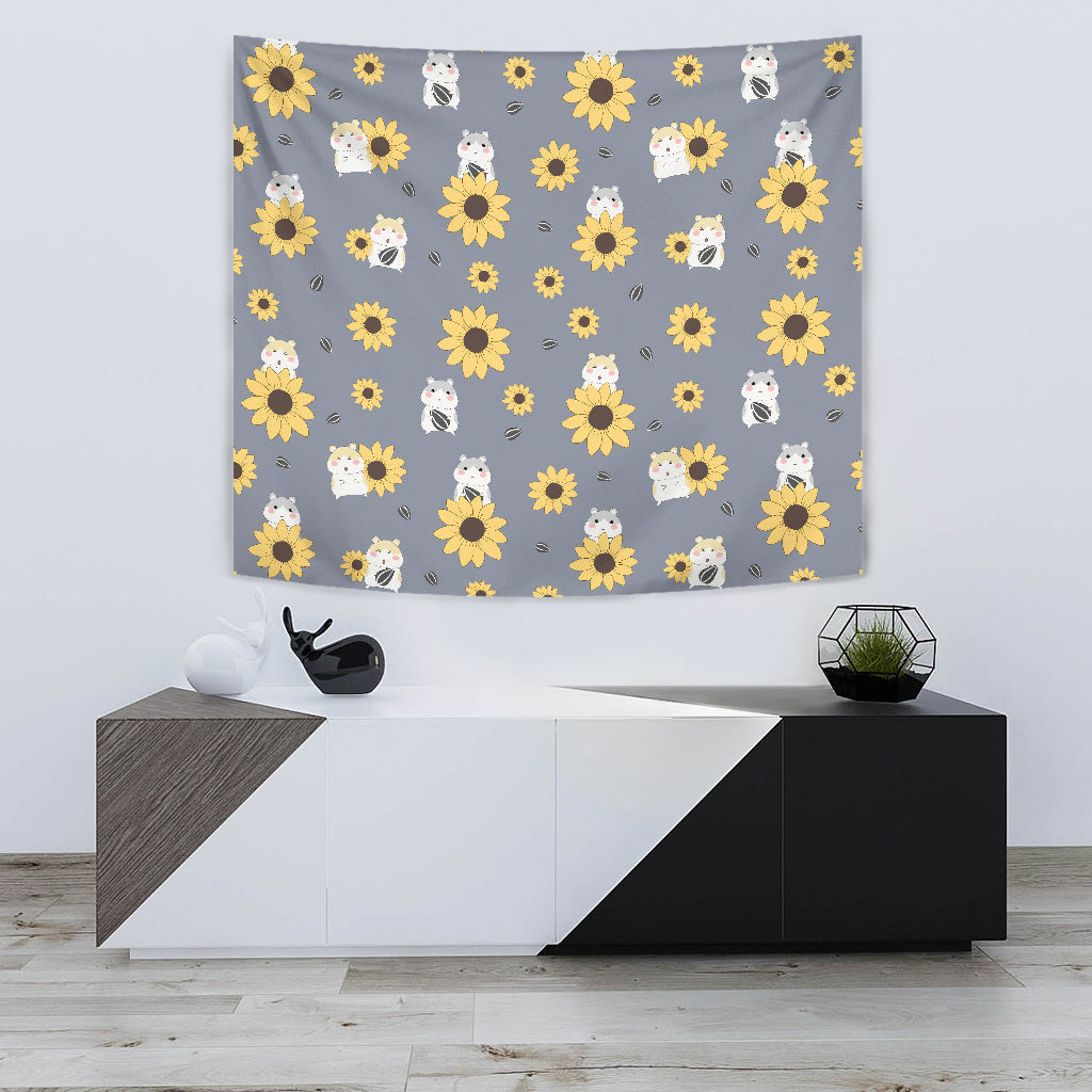 Cute Hamster Sunflower Pattern Background Wall Tapestry