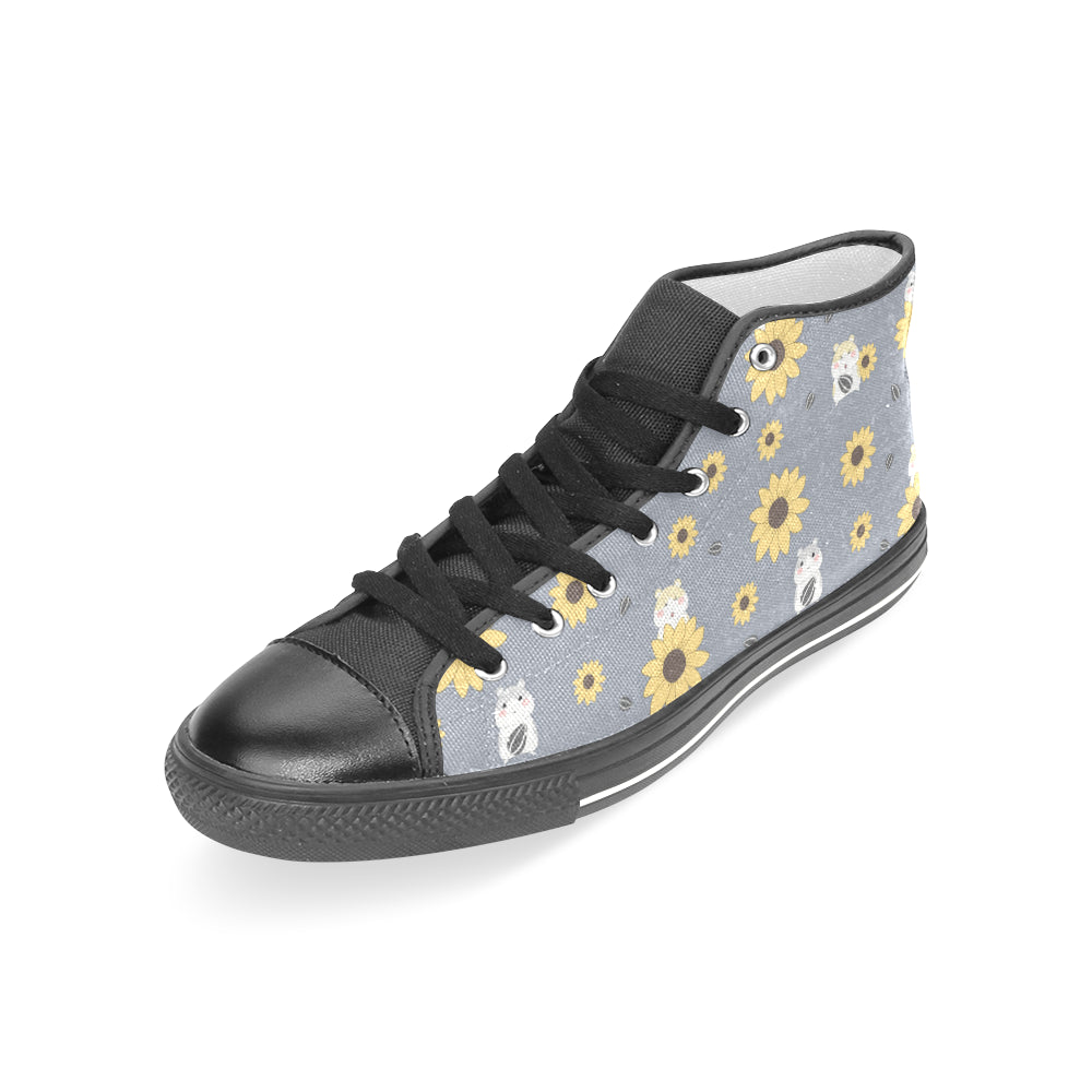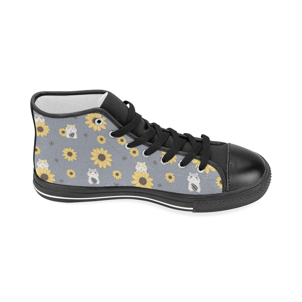 Cute hamster sunflower pattern background Women's High Top Canvas Shoes Black