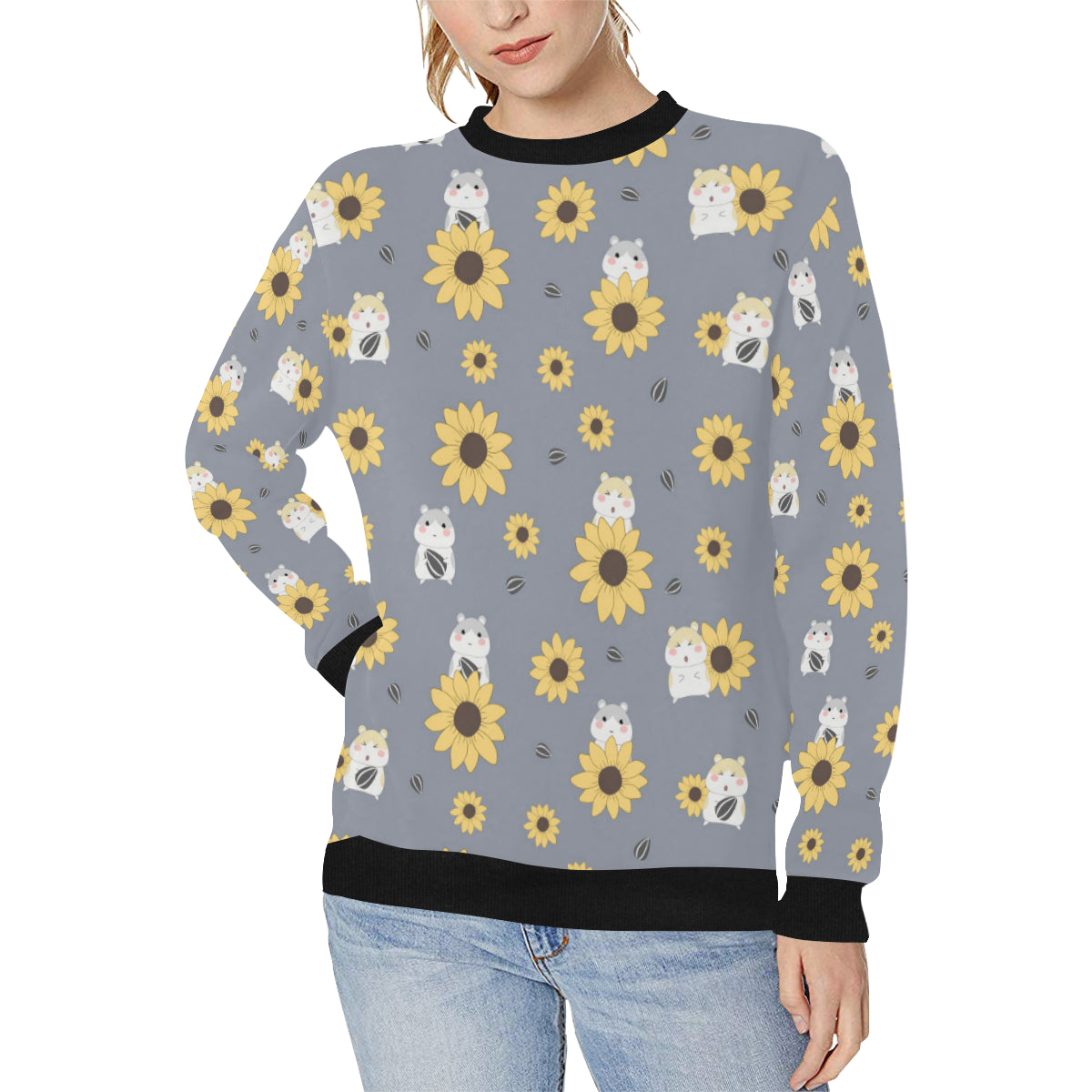 Cute hamster sunflower pattern background Women's Crew Neck Sweatshirt