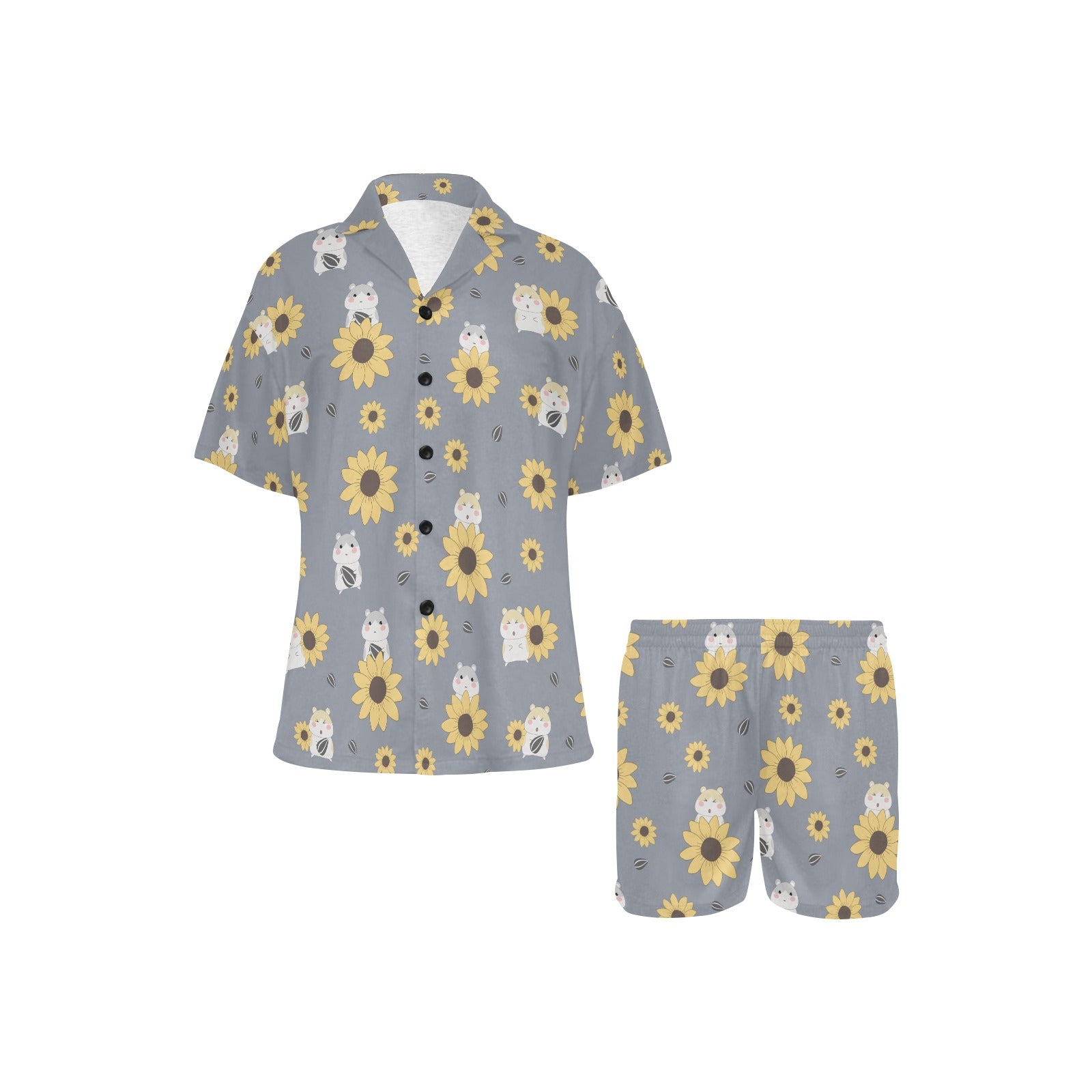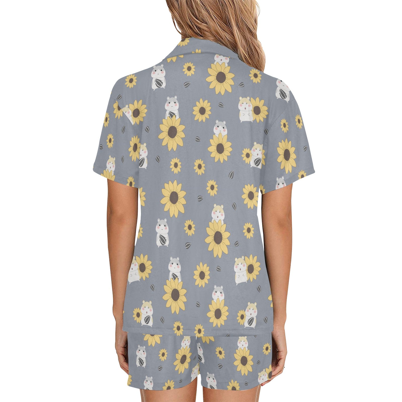 Cute hamster sunflower pattern background Women's V-Neck Short Pajama Set