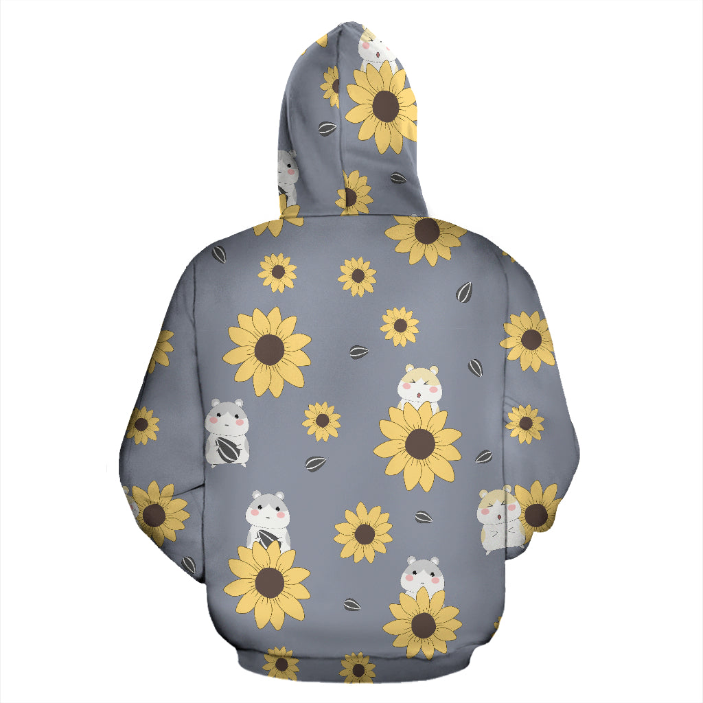 Cute Hamster Sunflower Pattern Background Zip Up Hoodie