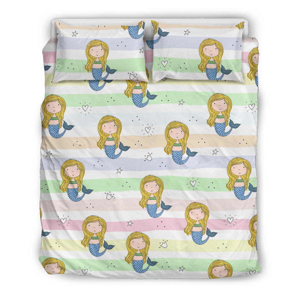 Cute hand drawn mermaid Bedding Set is a uniqued design and limited item. It made to order, hand printed, and sewn with love in our factory.