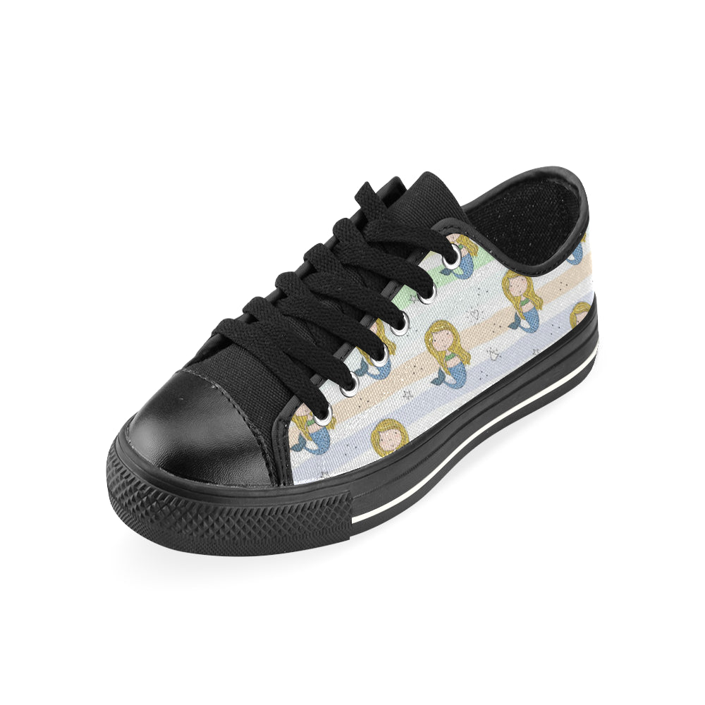 Cute hand drawn mermaid Men's Low Top Canvas Shoes Black