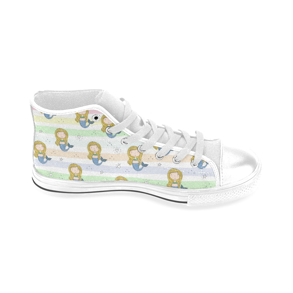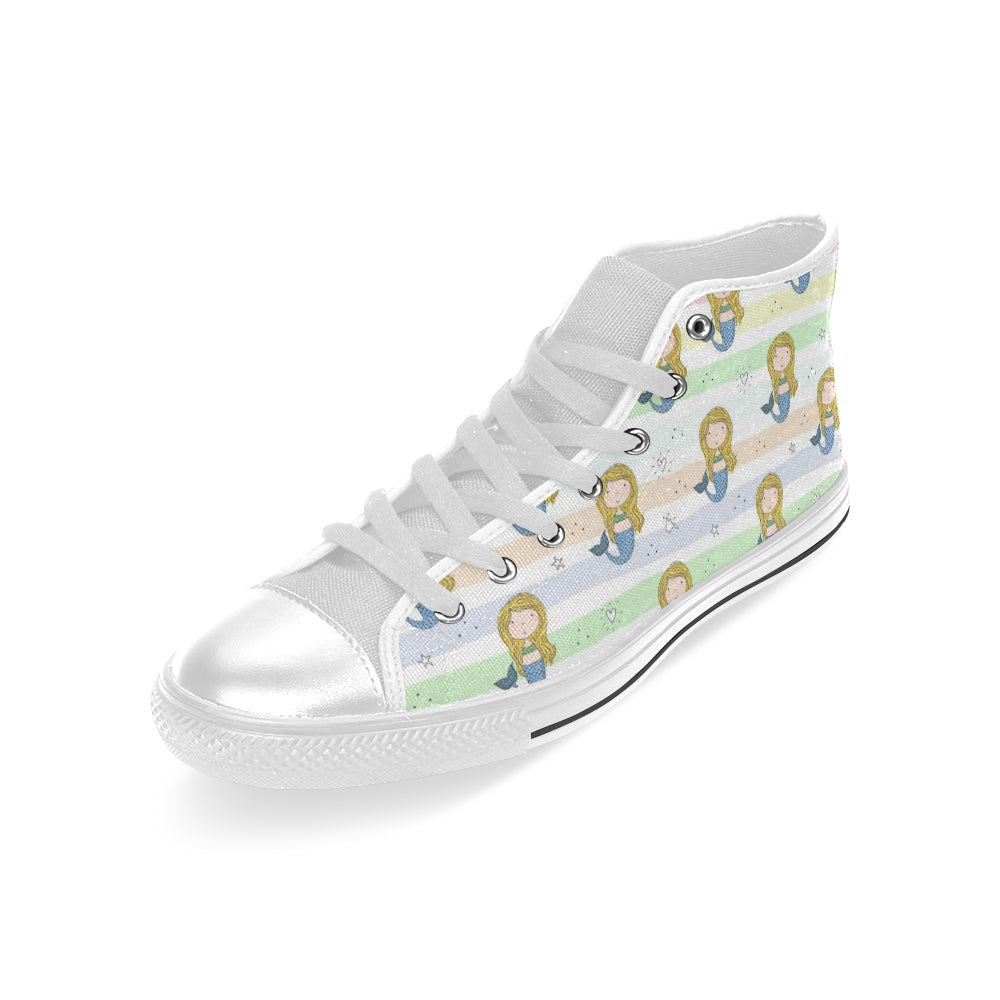 Cute hand drawn mermaid Men's High Top Canvas Shoes White