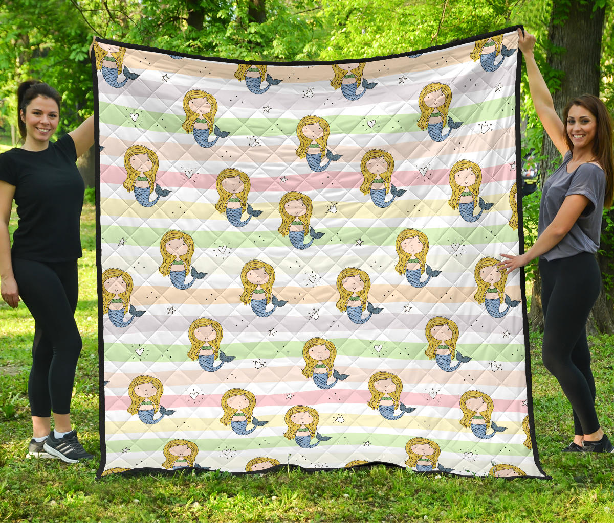 Cute Hand Drawn Mermaid Premium Quilt is a uniqued design and limited item. It made to order, hand printed, and sewn with love in our factory.