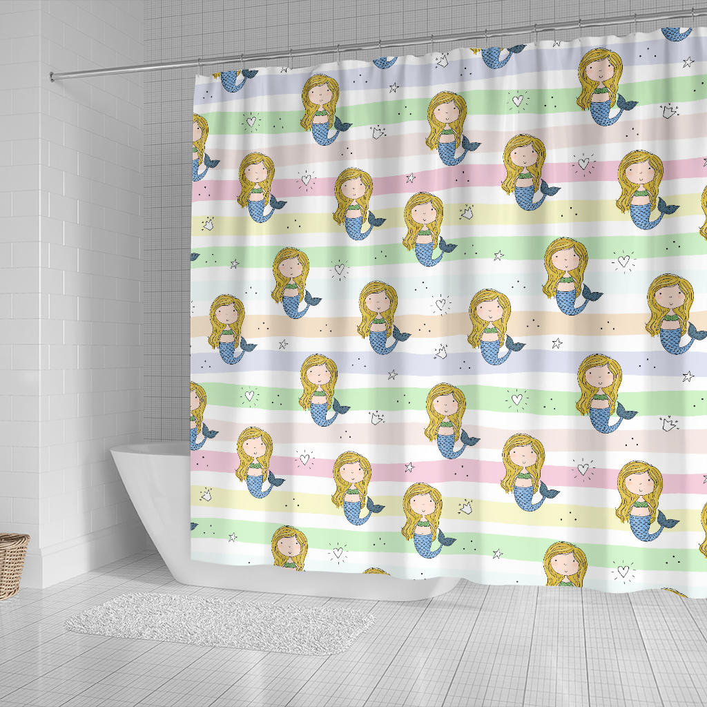 Cute Hand Drawn Mermaid Shower Curtain Fulfilled In US