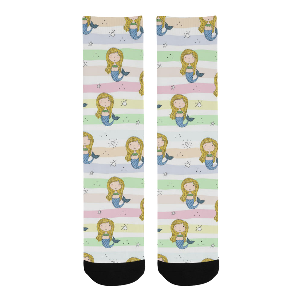 Cute hand drawn mermaid Crew Socks are uniqued design and limited item. It made to order, hand printed, and sewn with love in our factory.