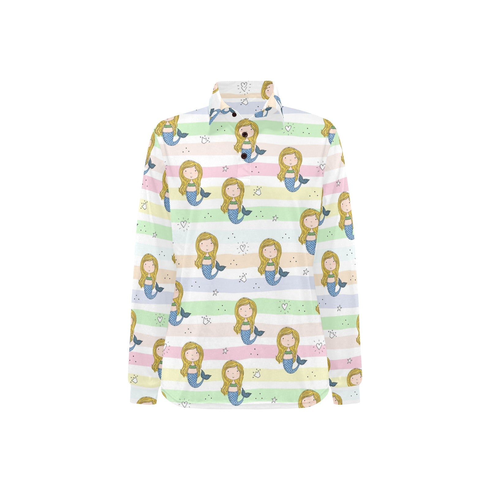 Cute hand drawn mermaid Women's Long Sleeve Polo Shirt