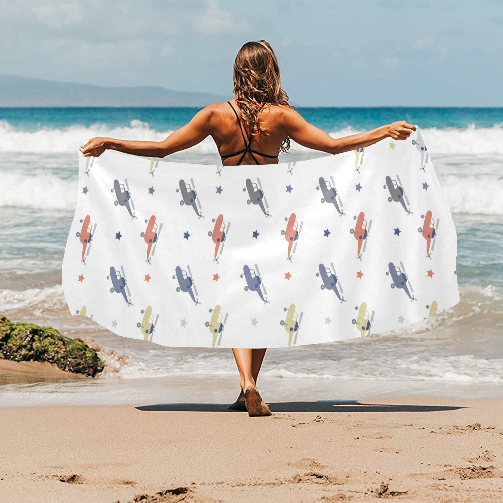 Cute helicopter star pattern Beach Towel