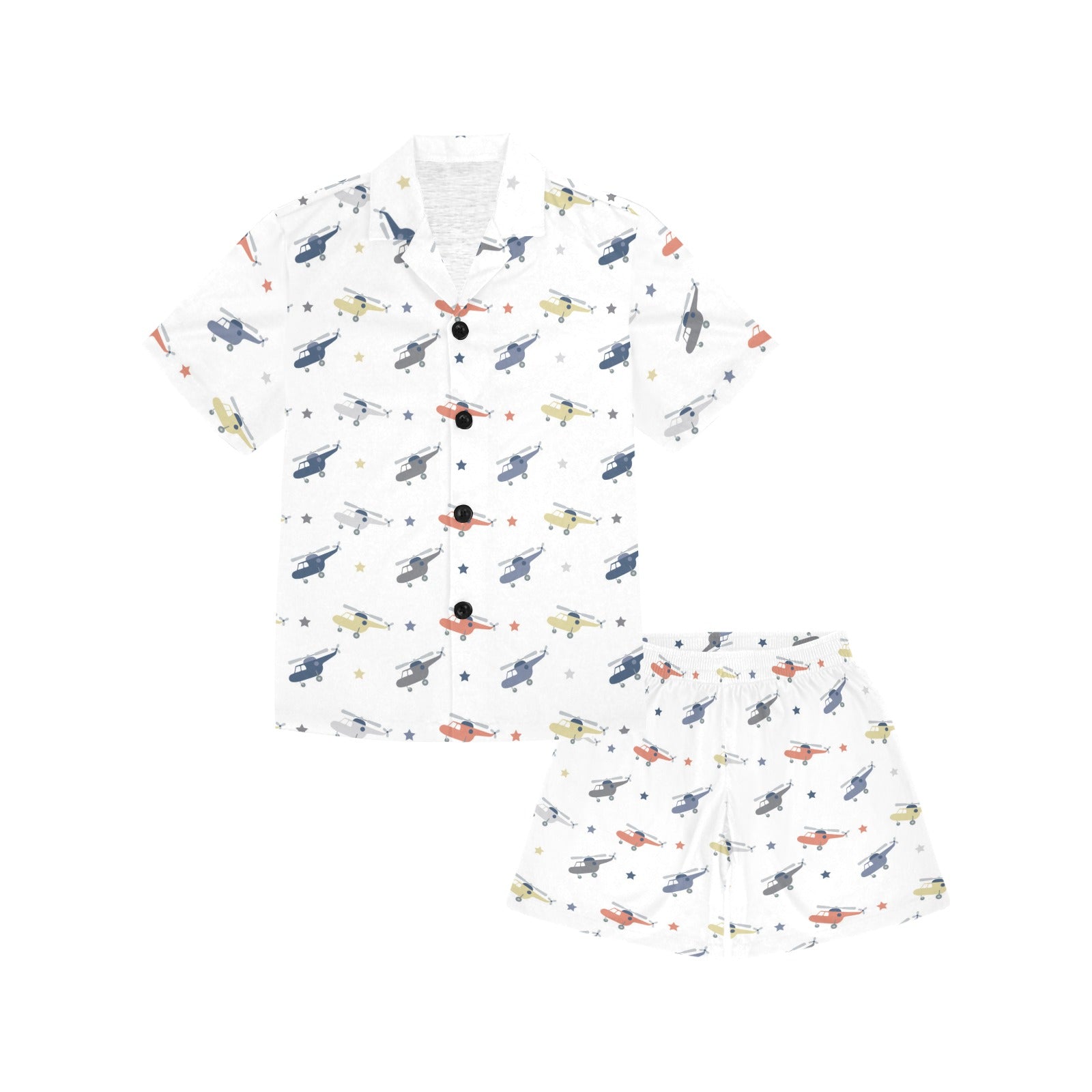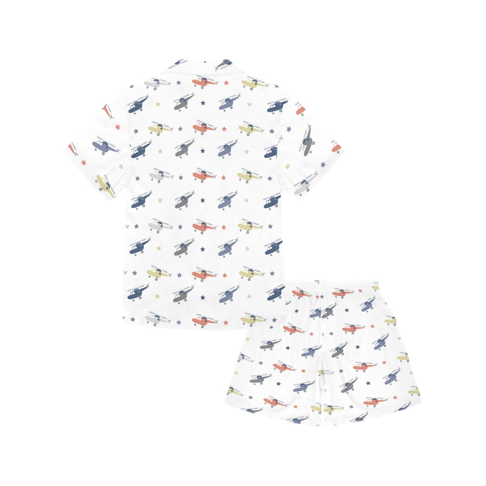 Cute helicopter star pattern Kids' Boys' Girls' V-Neck Short Pajama Set