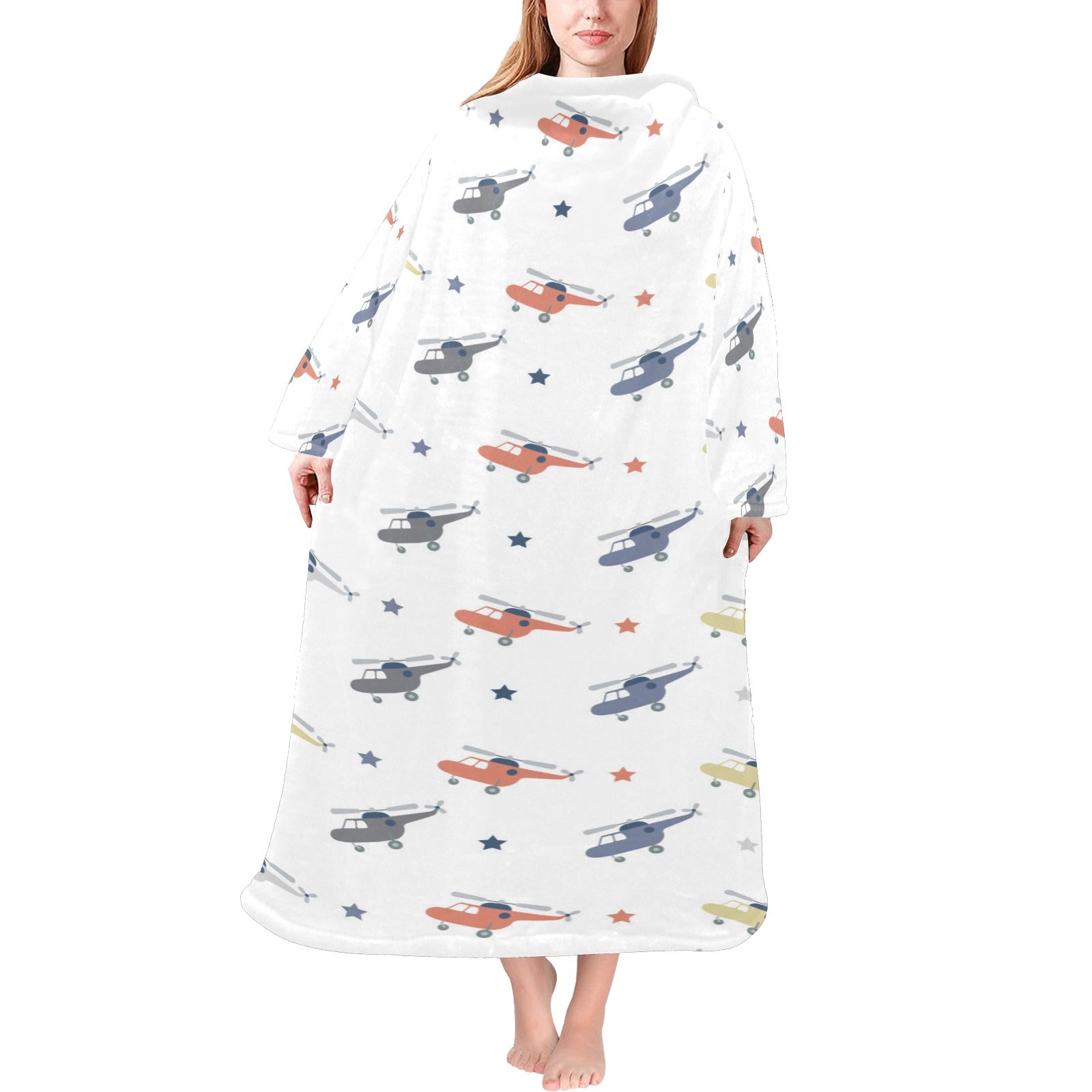 Cute helicopter star pattern Blanket Robe with Sleeves