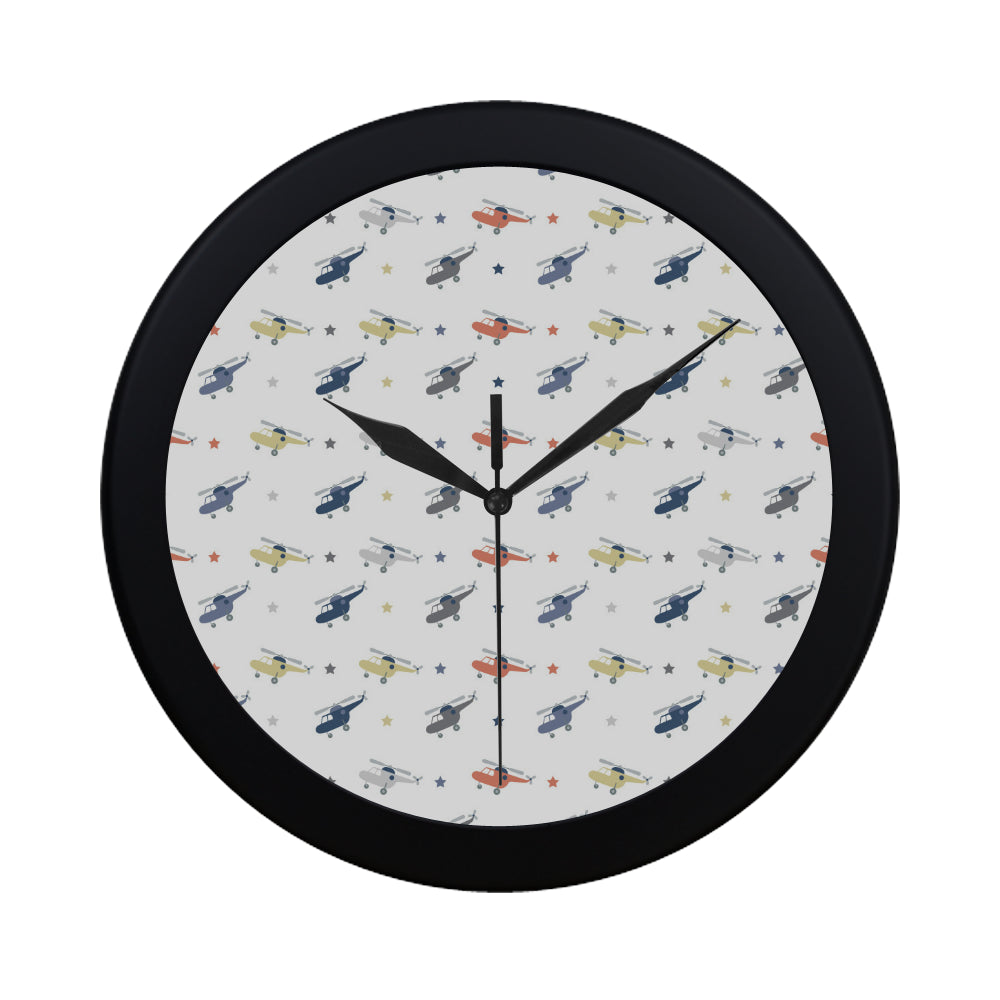 Cute helicopter star pattern Elegant Black Wall Clock
