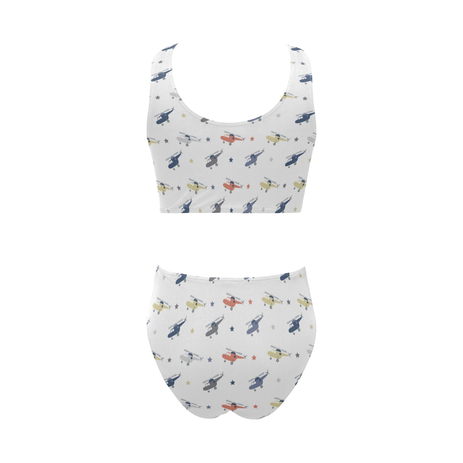Cute helicopter star pattern Chest Bowknot High Waisted Bikini Swimsuit