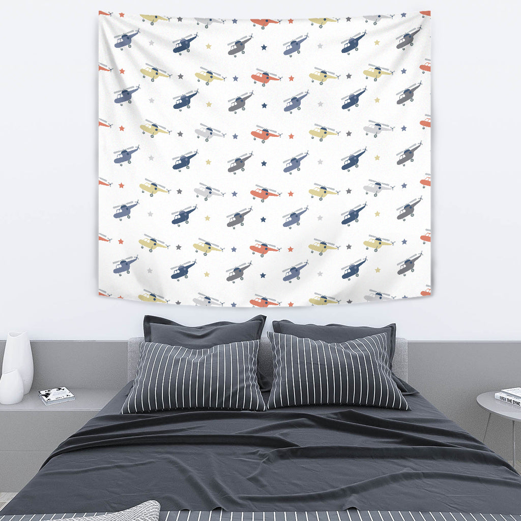 Cute helicopter star pattern Tapestry is a uniqued design and limited item. It made to order, hand printed, and sewn with love in our factory.