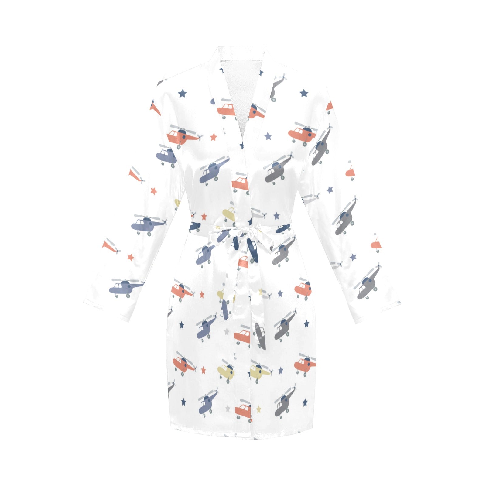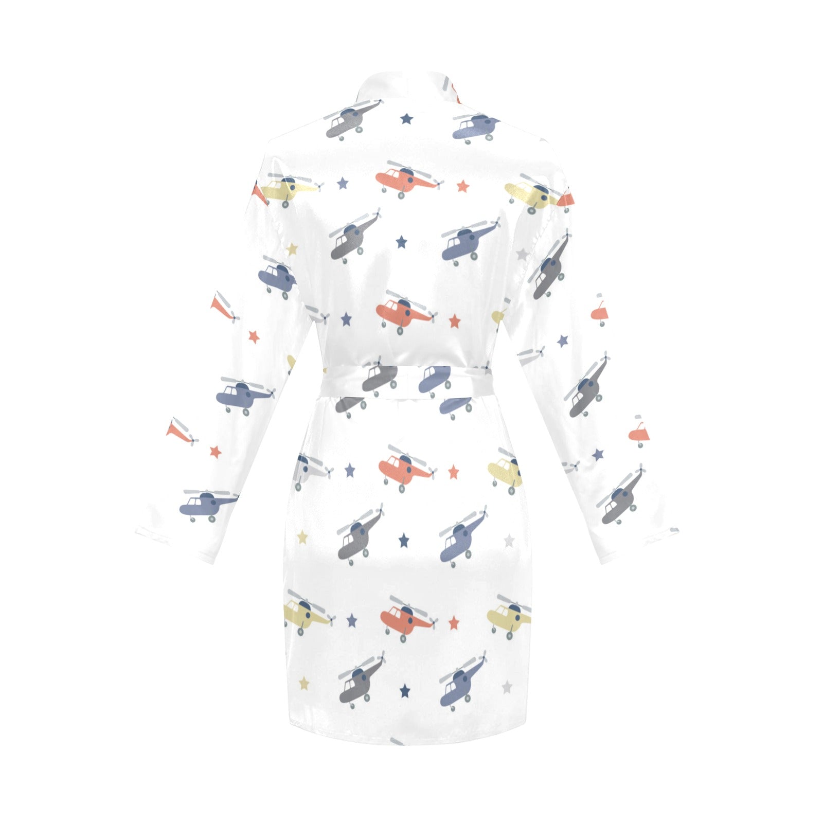 Cute helicopter star pattern Women's Long Sleeve Belted Night Robe