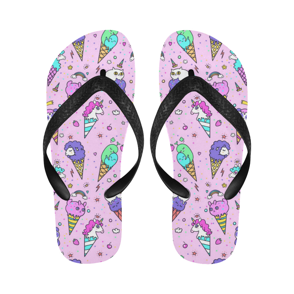 Cute ice cream cone animal pattern Unisex Flip Flops is a uniqued design and limited item. It made to order, hand printed, and sewn with love in our factory.
