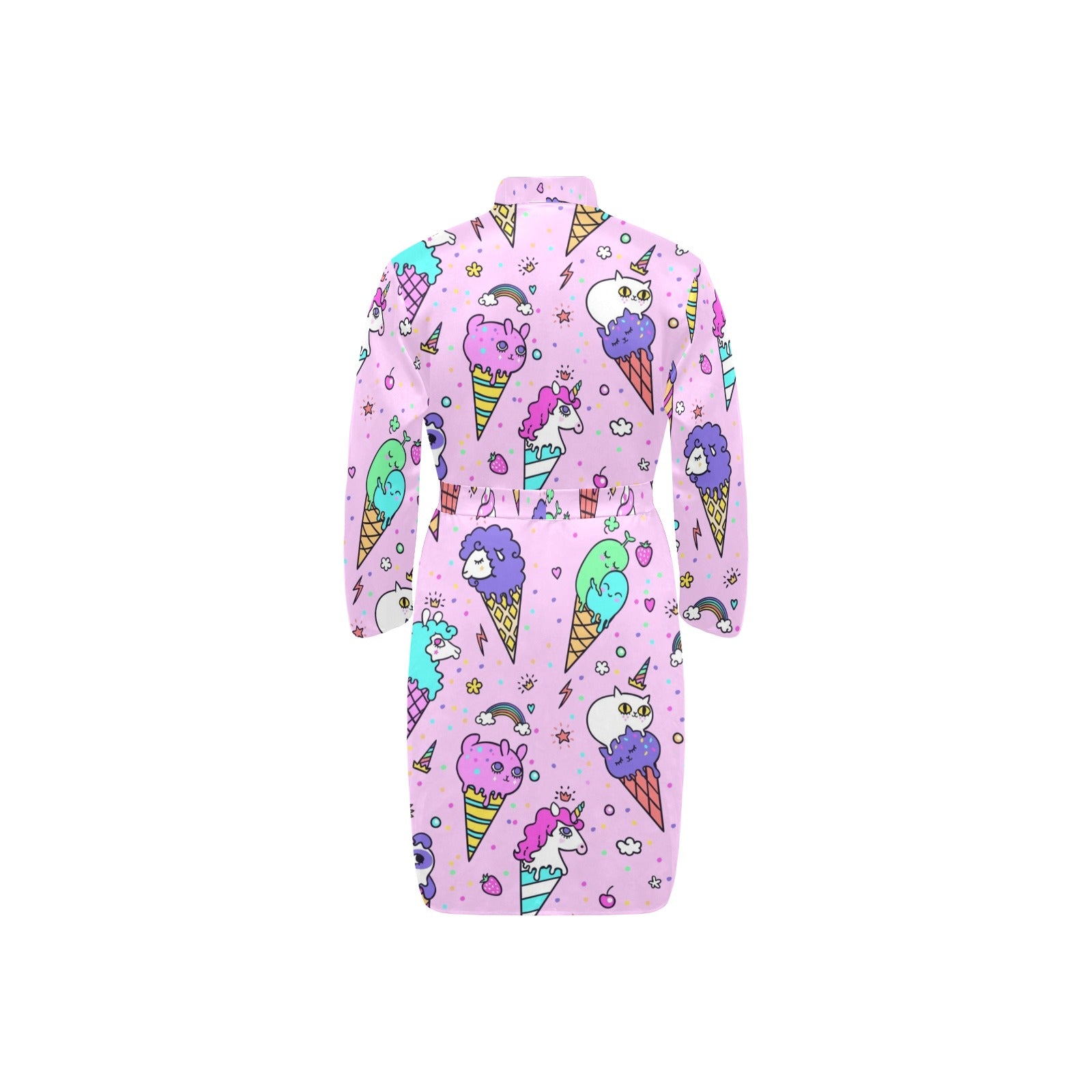 Cute ice cream cone animal pattern Men's Long Sleeve Belted Night Robe