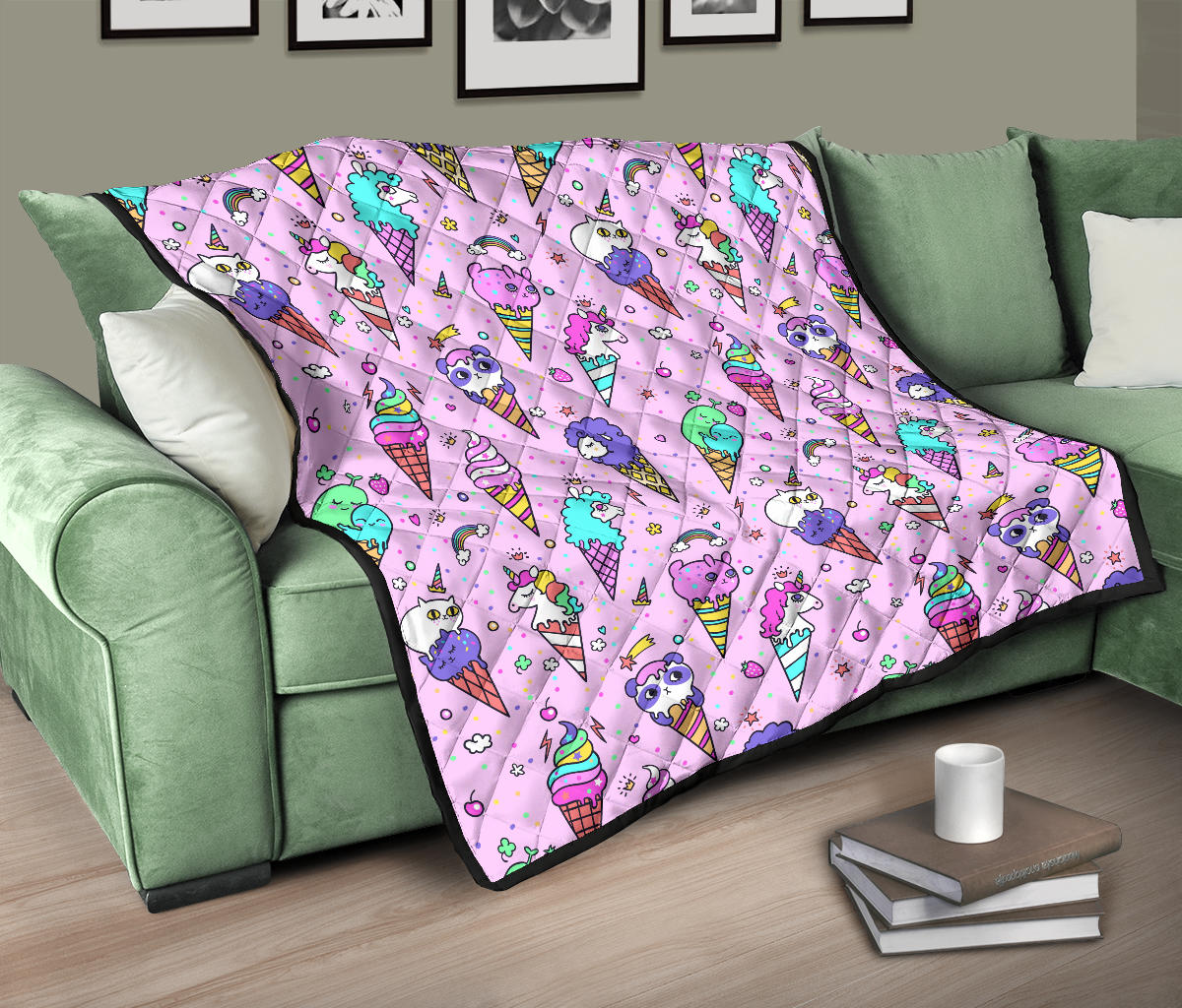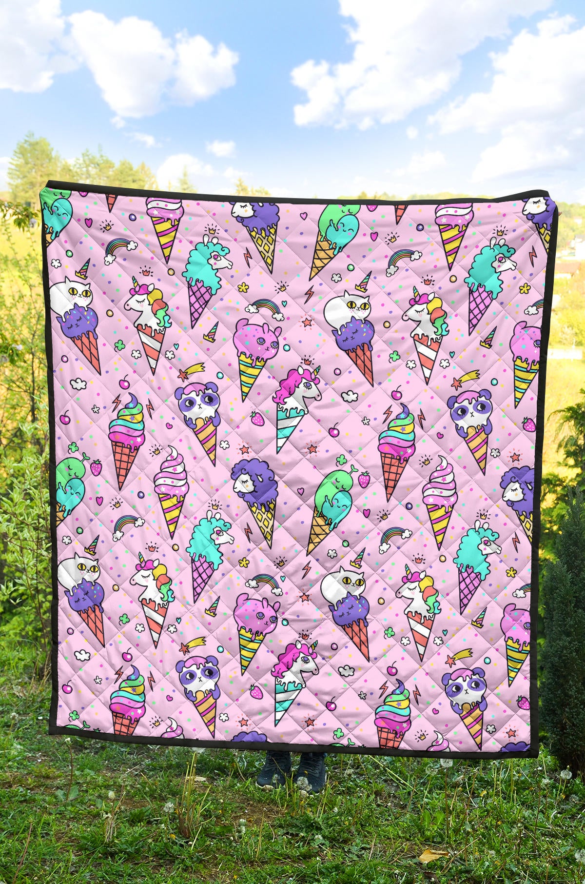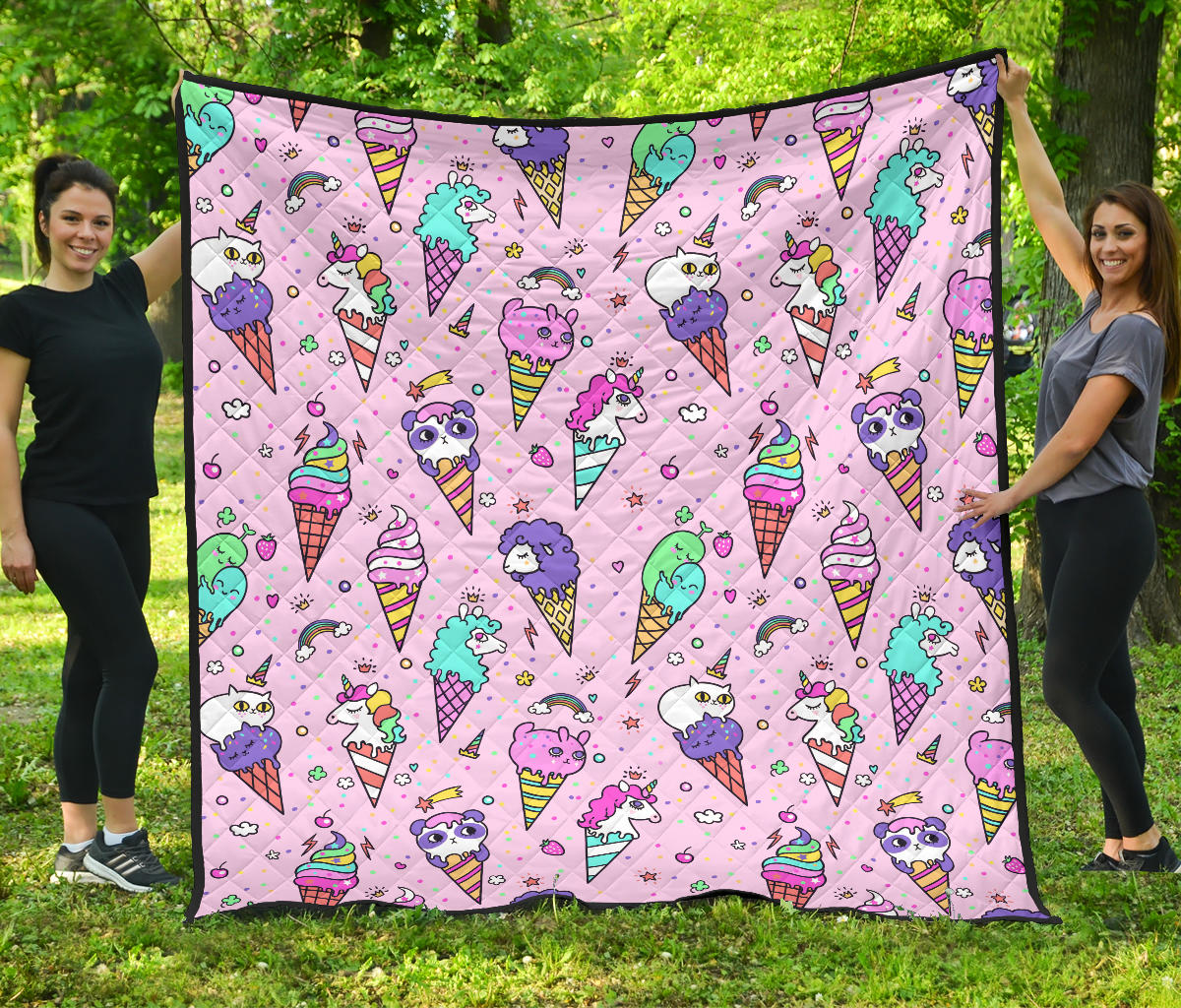 Cute Ice Cream Cone Animal Pattern Premium Quilt is a uniqued design and limited item. It made to order, hand printed, and sewn with love in our factory.