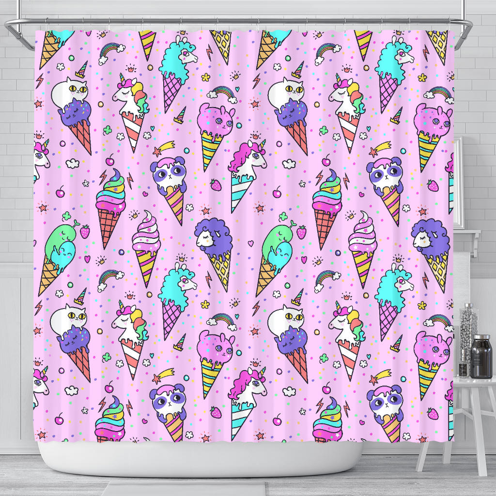 Cute ice cream cone animal pattern Shower Curtain is a uniqued design and limited item. It made to order, hand printed, and sewn with love in our factory.