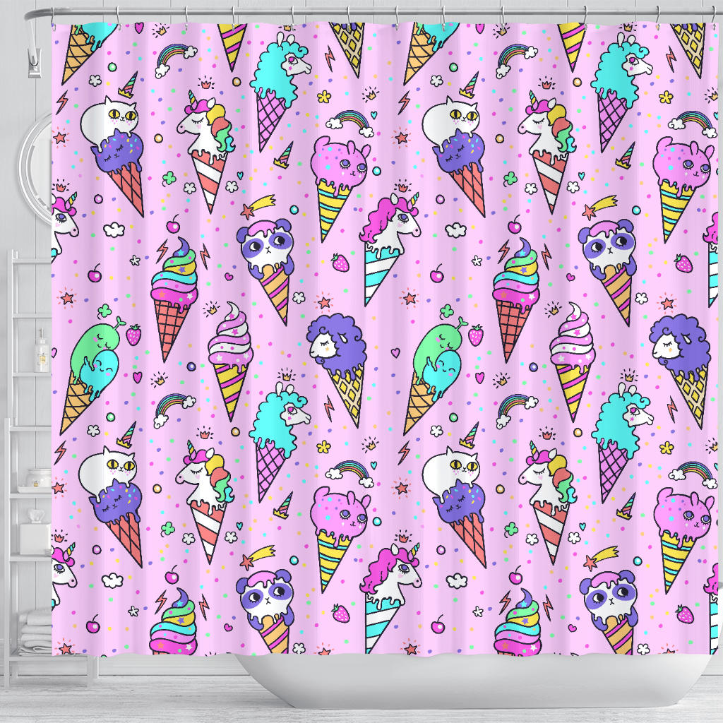 Cute Ice Cream Cone Animal Pattern Shower Curtain Fulfilled In US