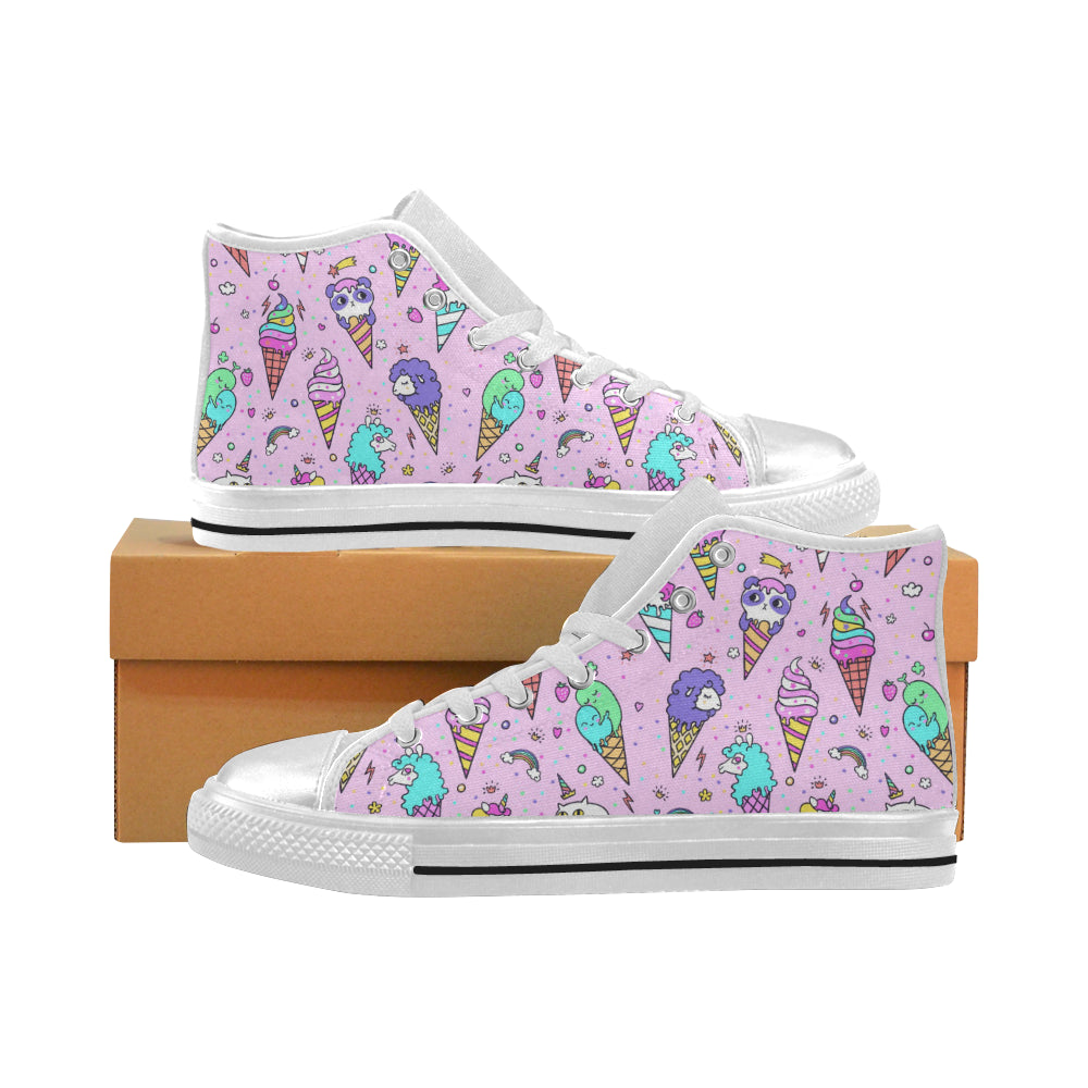 Cute ice cream cone animal pattern Women's High Top Canvas Shoes White
