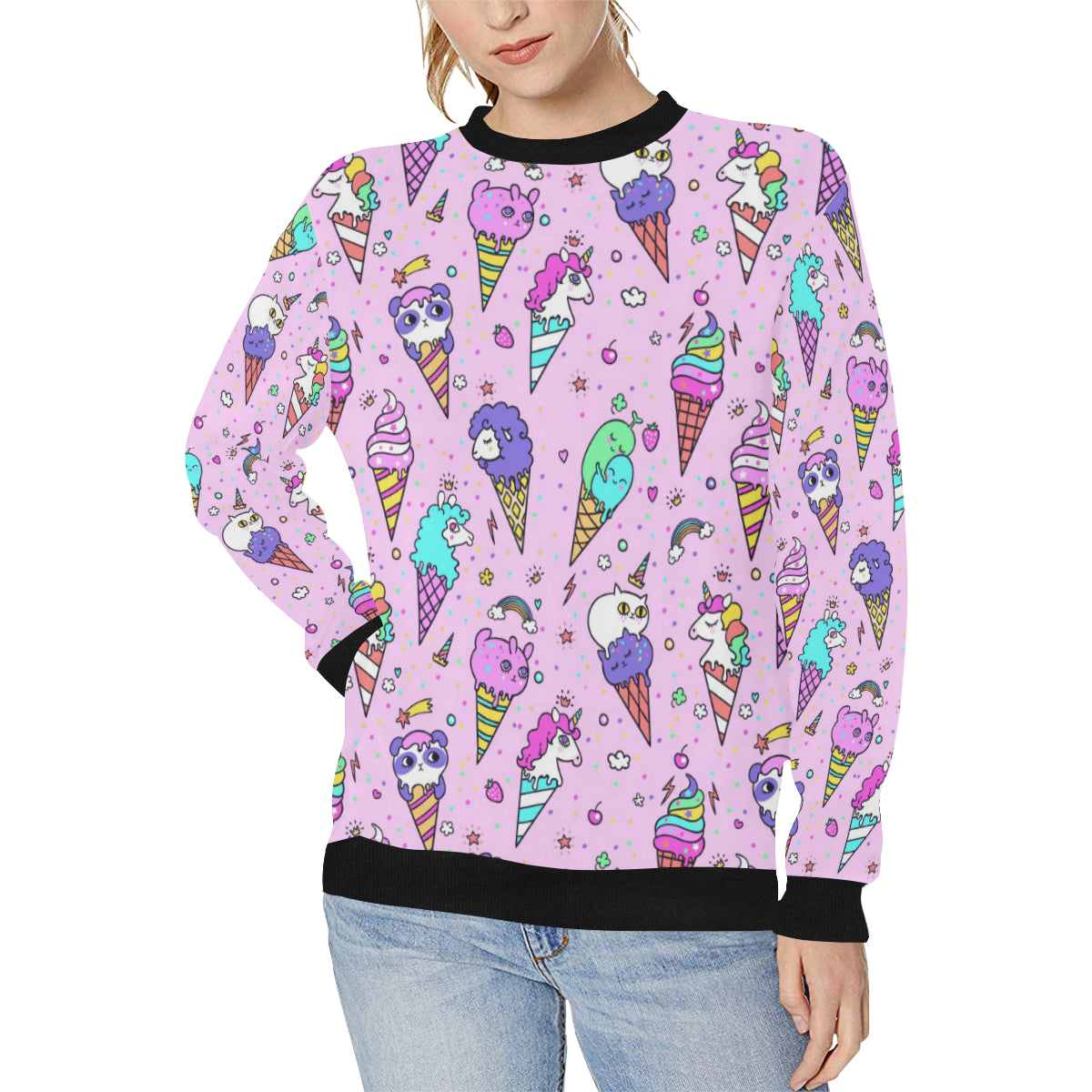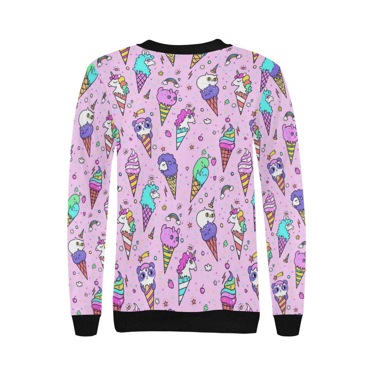 Cute ice cream cone animal pattern Women's Crew Neck Sweatshirt is a uniqued design and limited item. It made to order, hand printed, and sewn with love in our factory.