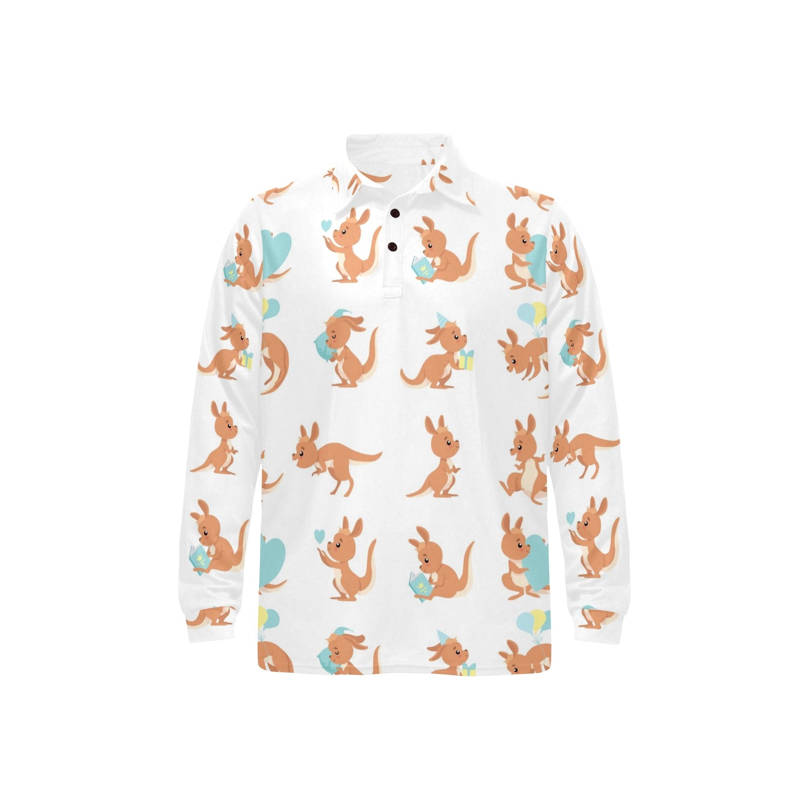 Cute Kangaroo pattern Men's Long Sleeve Polo Shirt