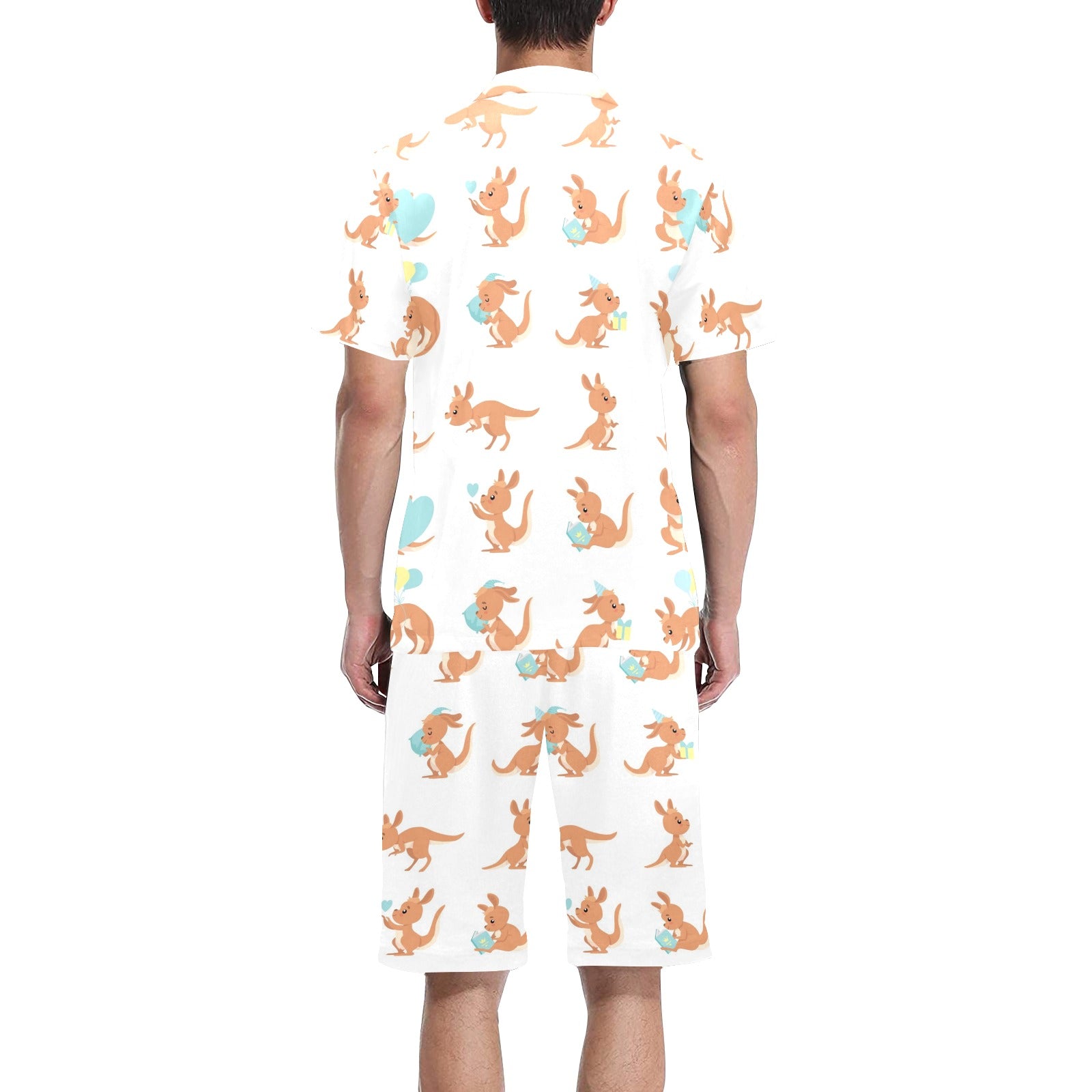 Cute Kangaroo pattern Men's V-Neck Short Pajama Set