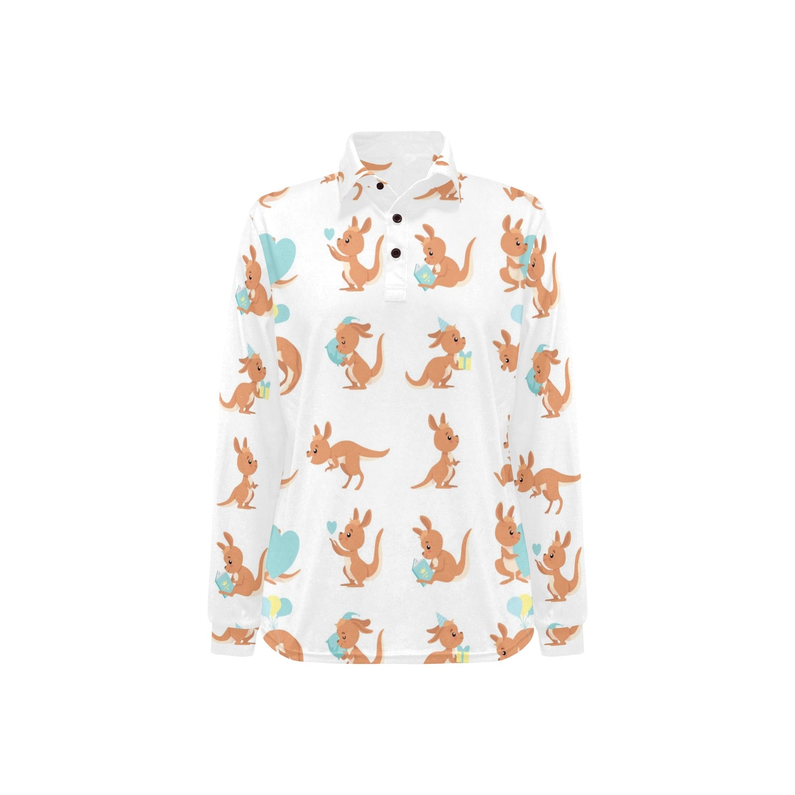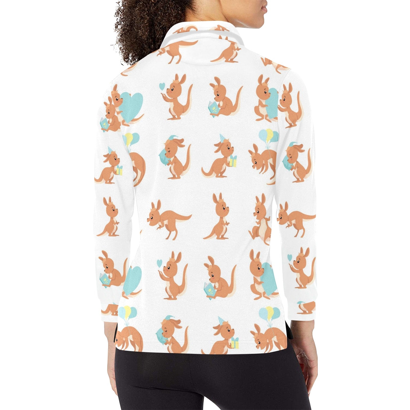 Cute Kangaroo pattern Women's Long Sleeve Polo Shirt