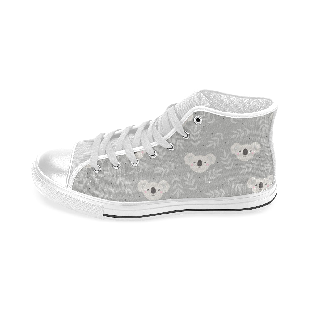 Cute koala leaves pattern Men's High Top Canvas Shoes White