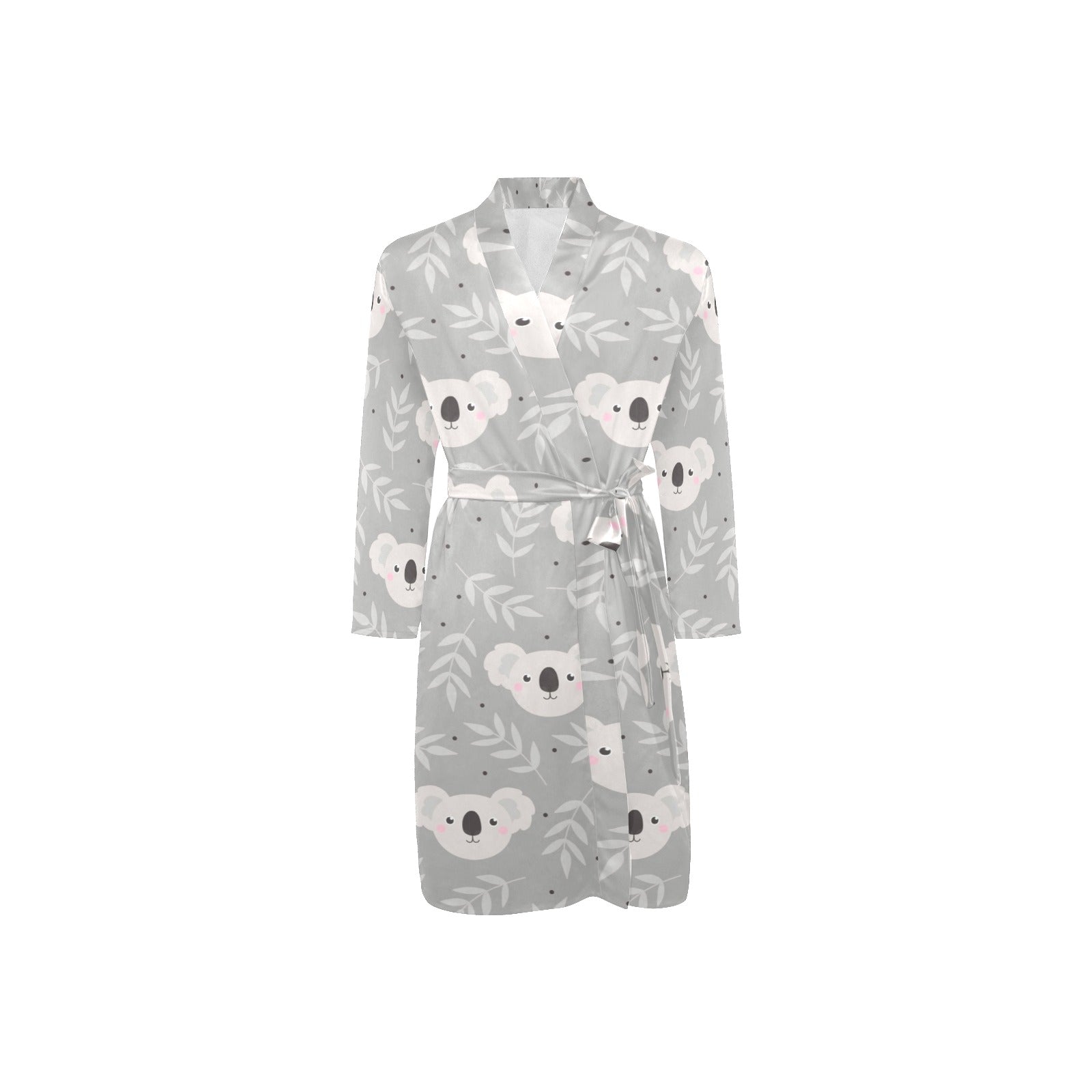 Cute koala leaves pattern Men's Long Sleeve Belted Night Robe