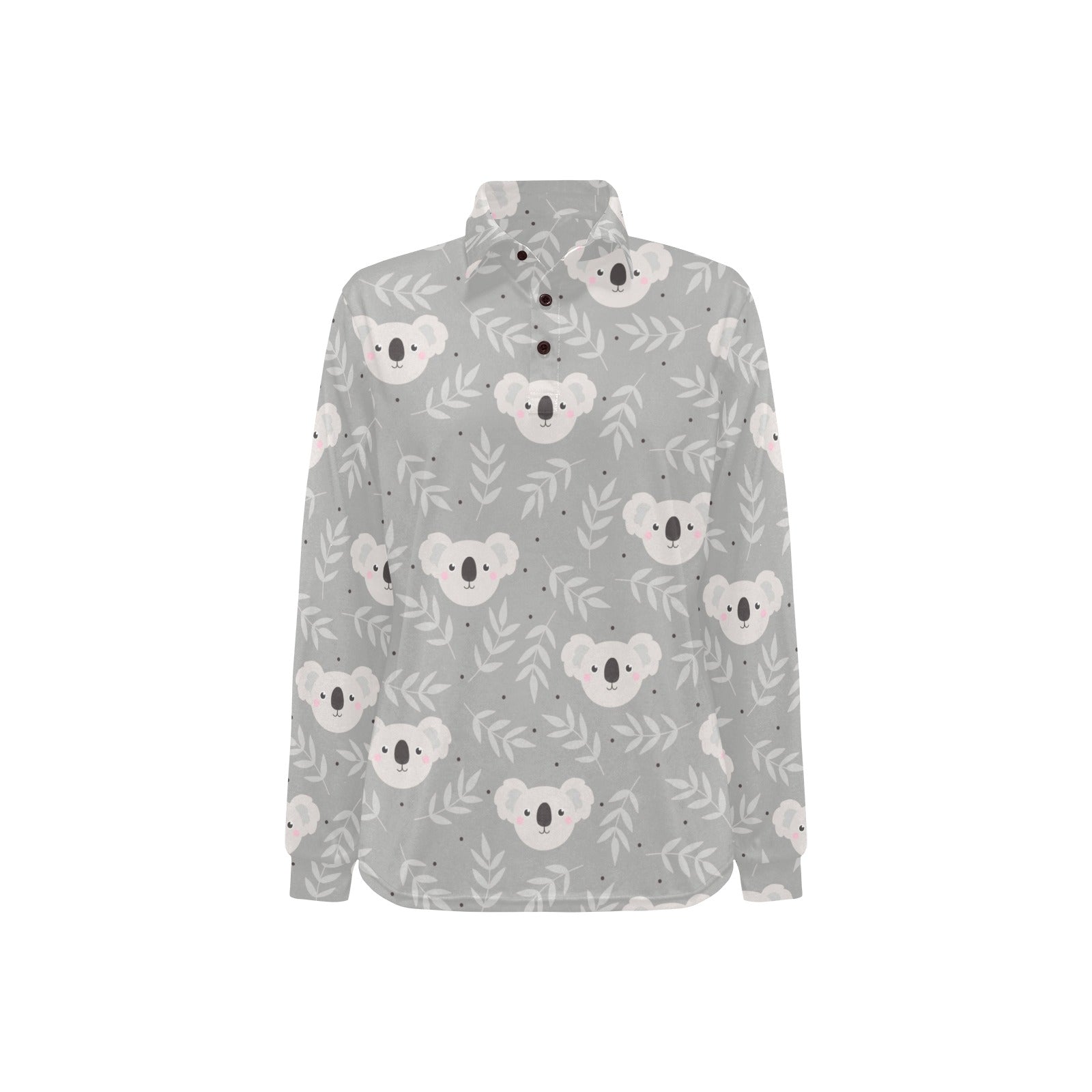 Cute koala leaves pattern Women's Long Sleeve Polo Shirt