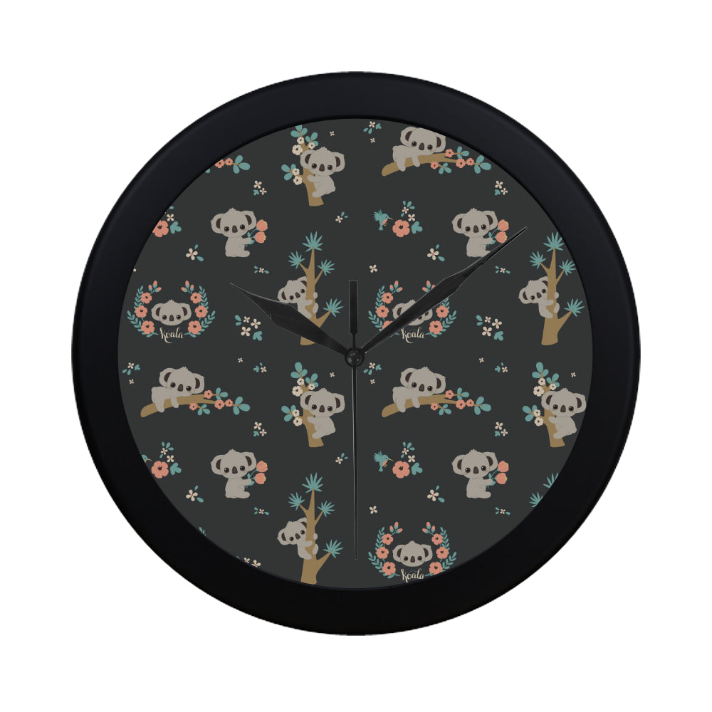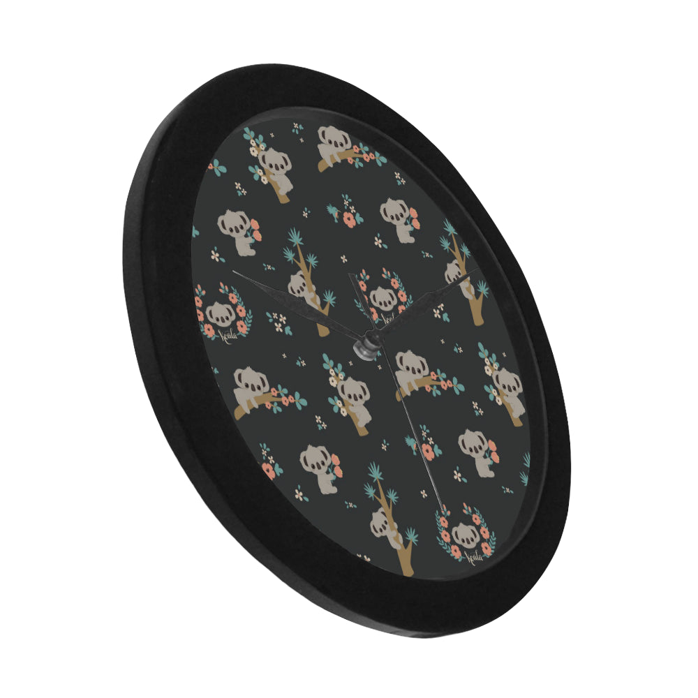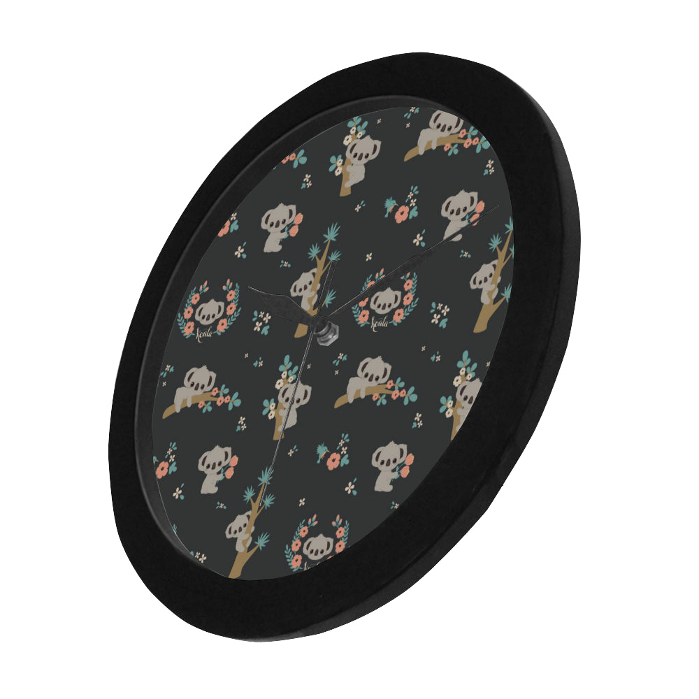 Cute koala pattern Elegant Black Wall Clock