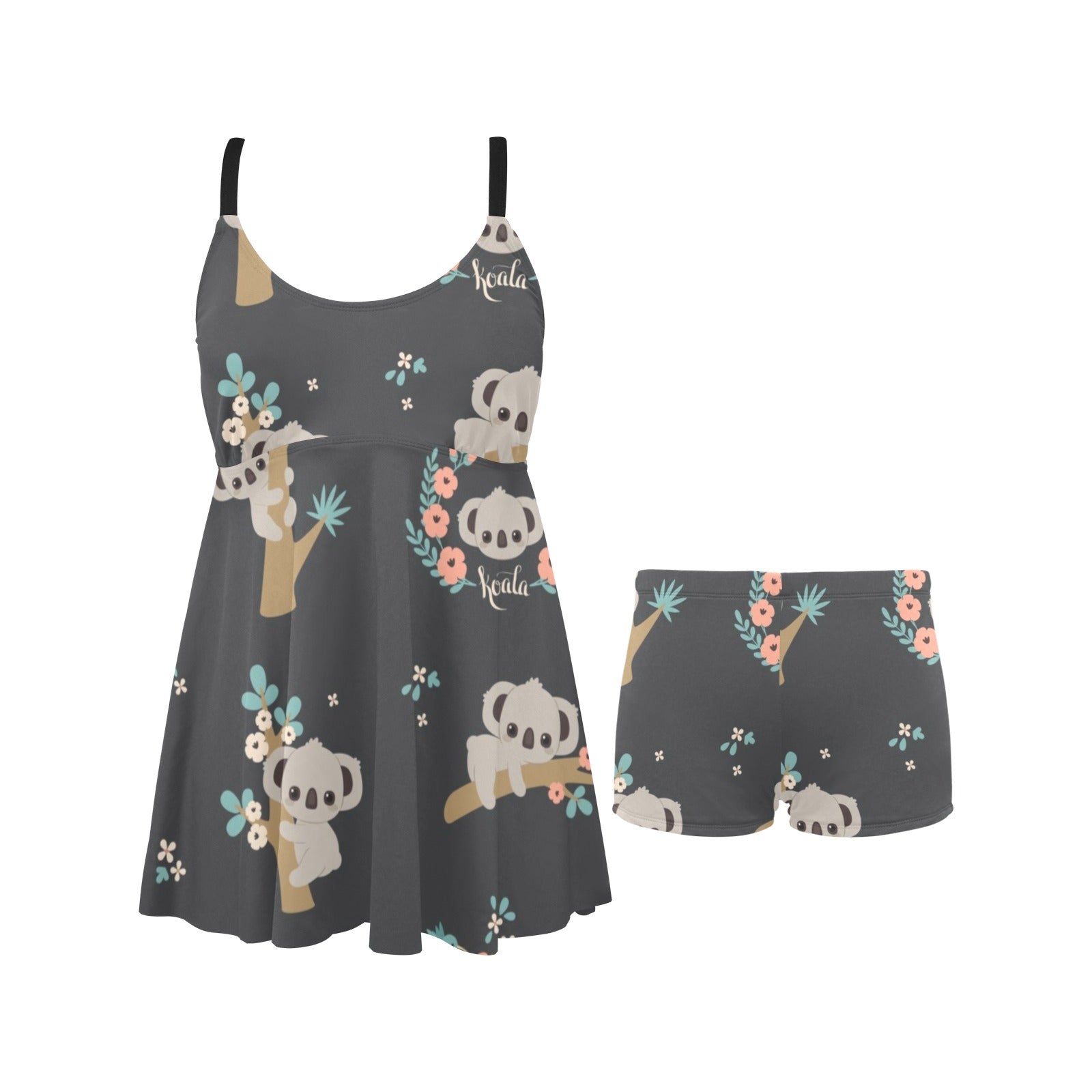 Cute koala pattern Chest Sexy Pleated Two Piece Swim Dress