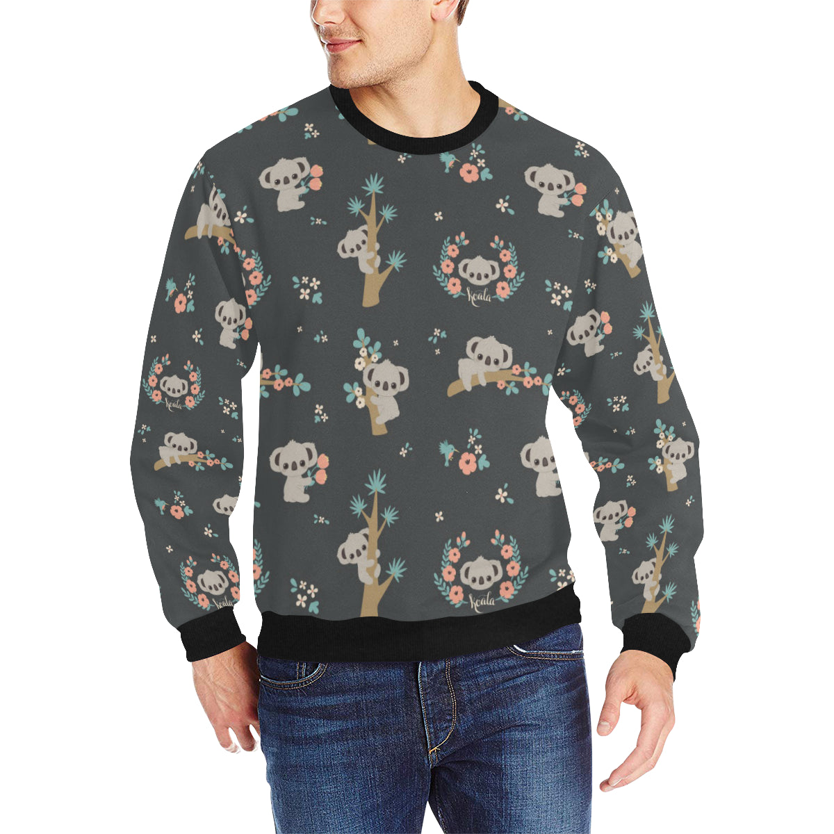 Cute koala pattern Men's Crew Neck Sweatshirt is a uniqued design and limited item. It made to order, hand printed, and sewn with love in our factory.