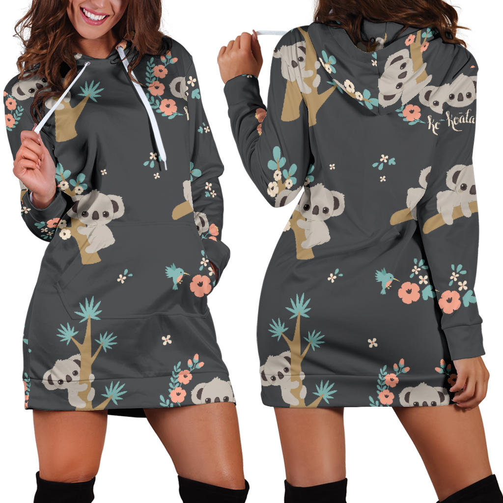 Cute koala pattern Women's Hoodie Dress is a uniqued design and limited item. It made to order, hand printed, and sewn with love in our factory.