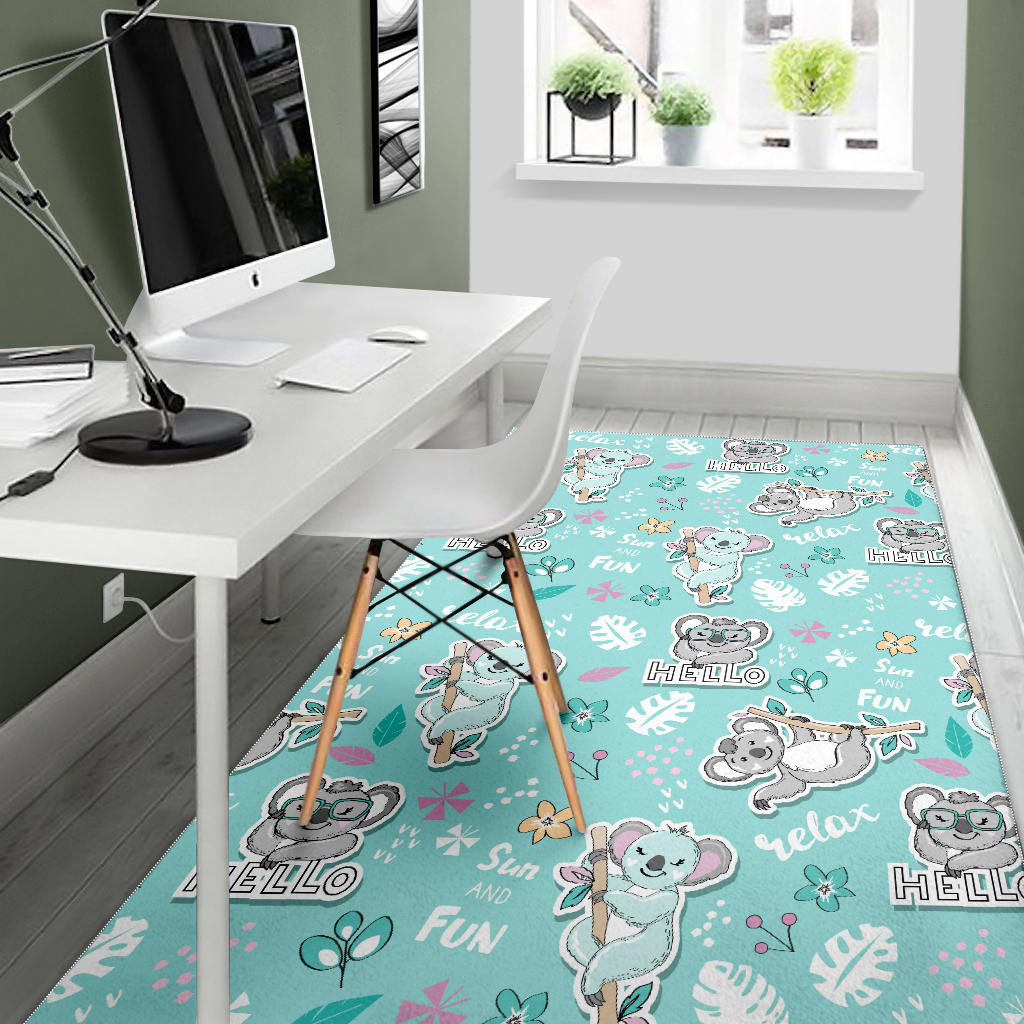 Cute koalas blue background pattern Area Rug is a uniqued design and limited item. It made to order, hand printed, and sewn with love in our factory.