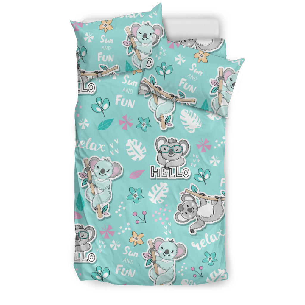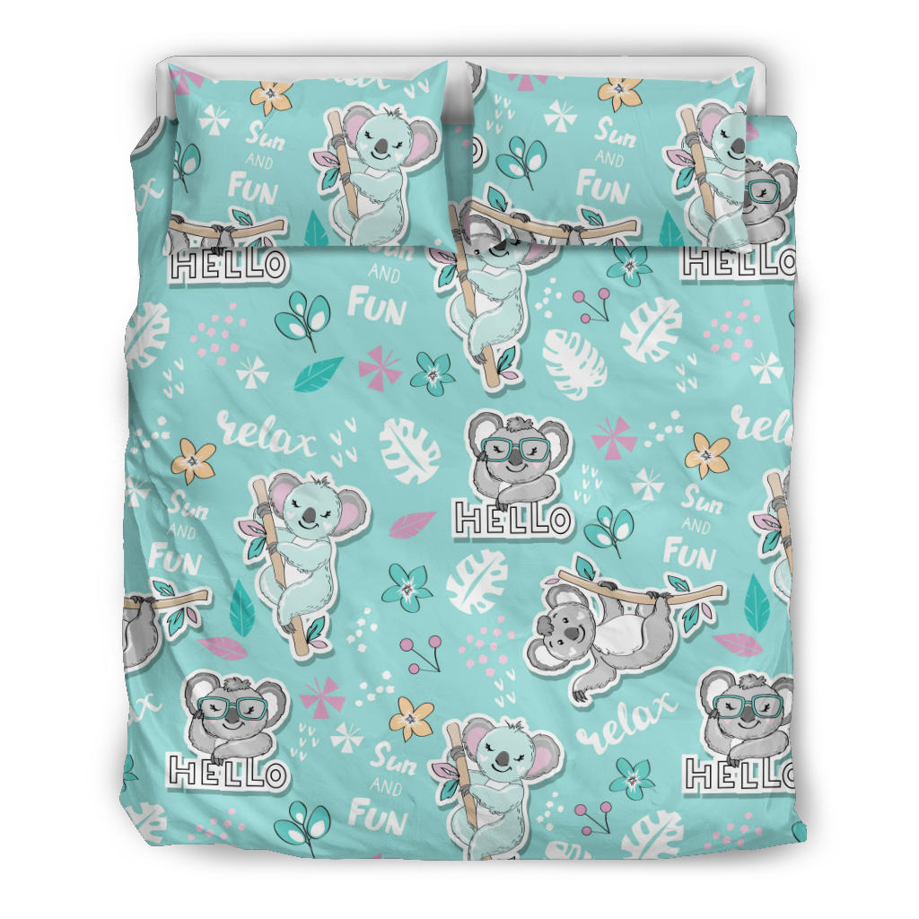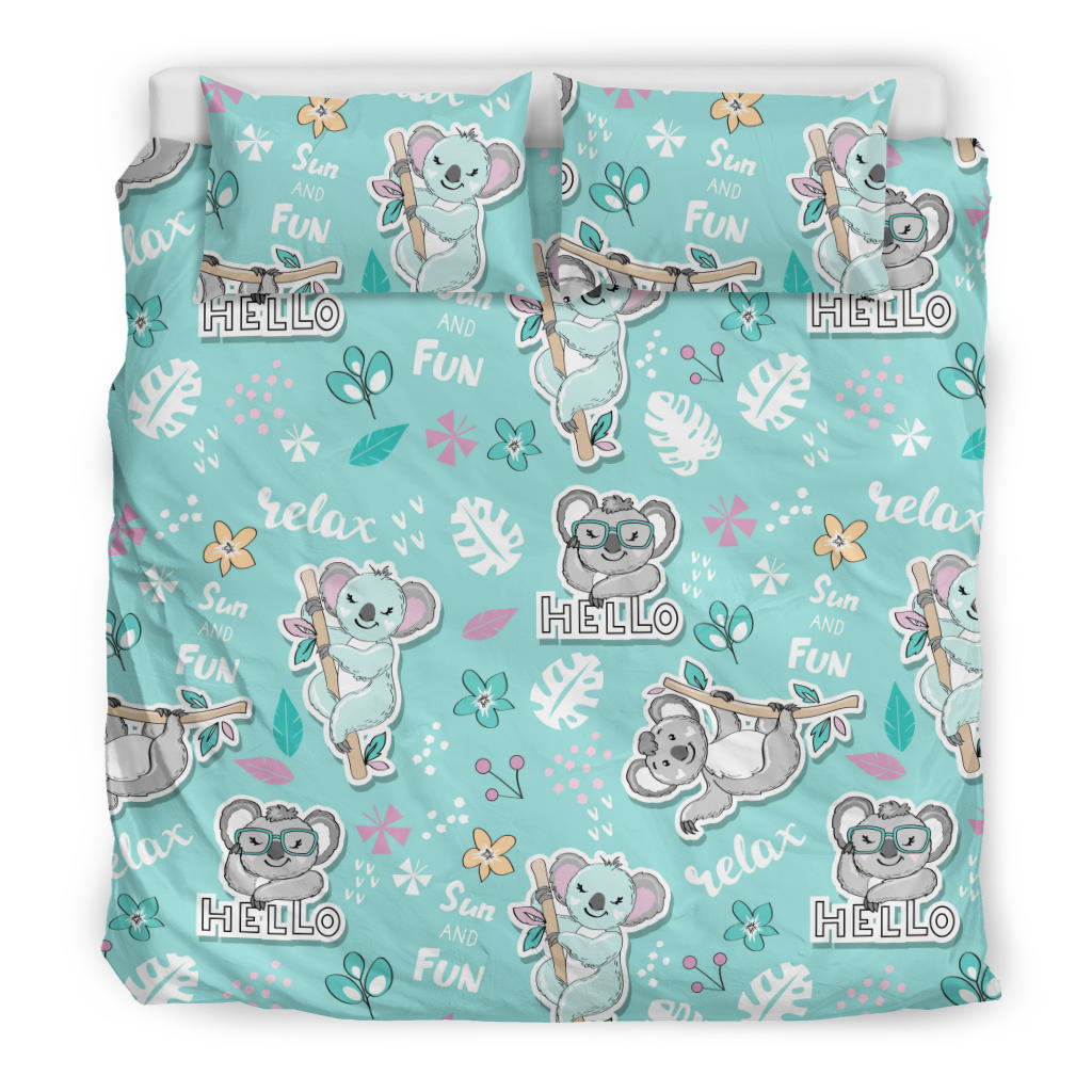 Cute koalas blue background pattern Bedding Set is a uniqued design and limited item. It made to order, hand printed, and sewn with love in our factory.