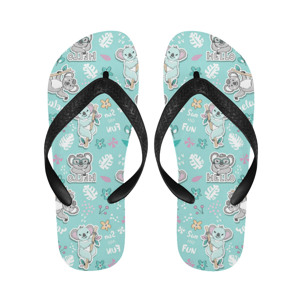 Cute koalas blue background pattern Unisex Flip Flops is a uniqued design and limited item. It made to order, hand printed, and sewn with love in our factory.