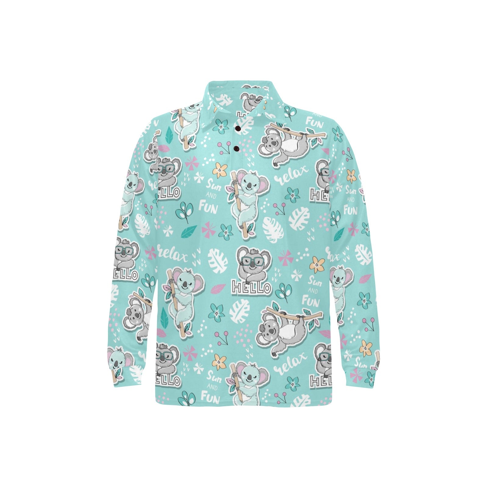 Cute koalas blue background pattern Men's Long Sleeve Polo Shirt