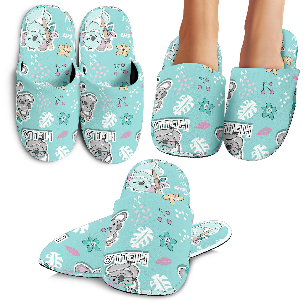 Cute koalas blue background pattern Slippers are uniqued design and limited item. It made to order, hand printed, and sewn with love in our factory.