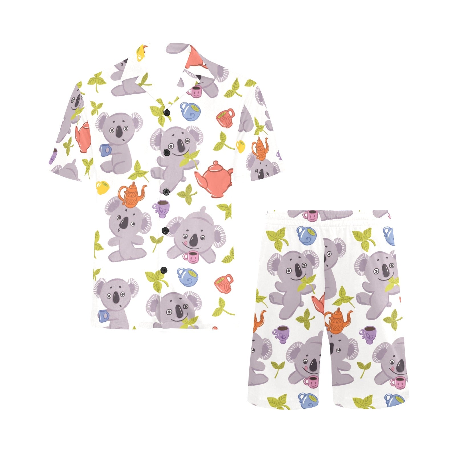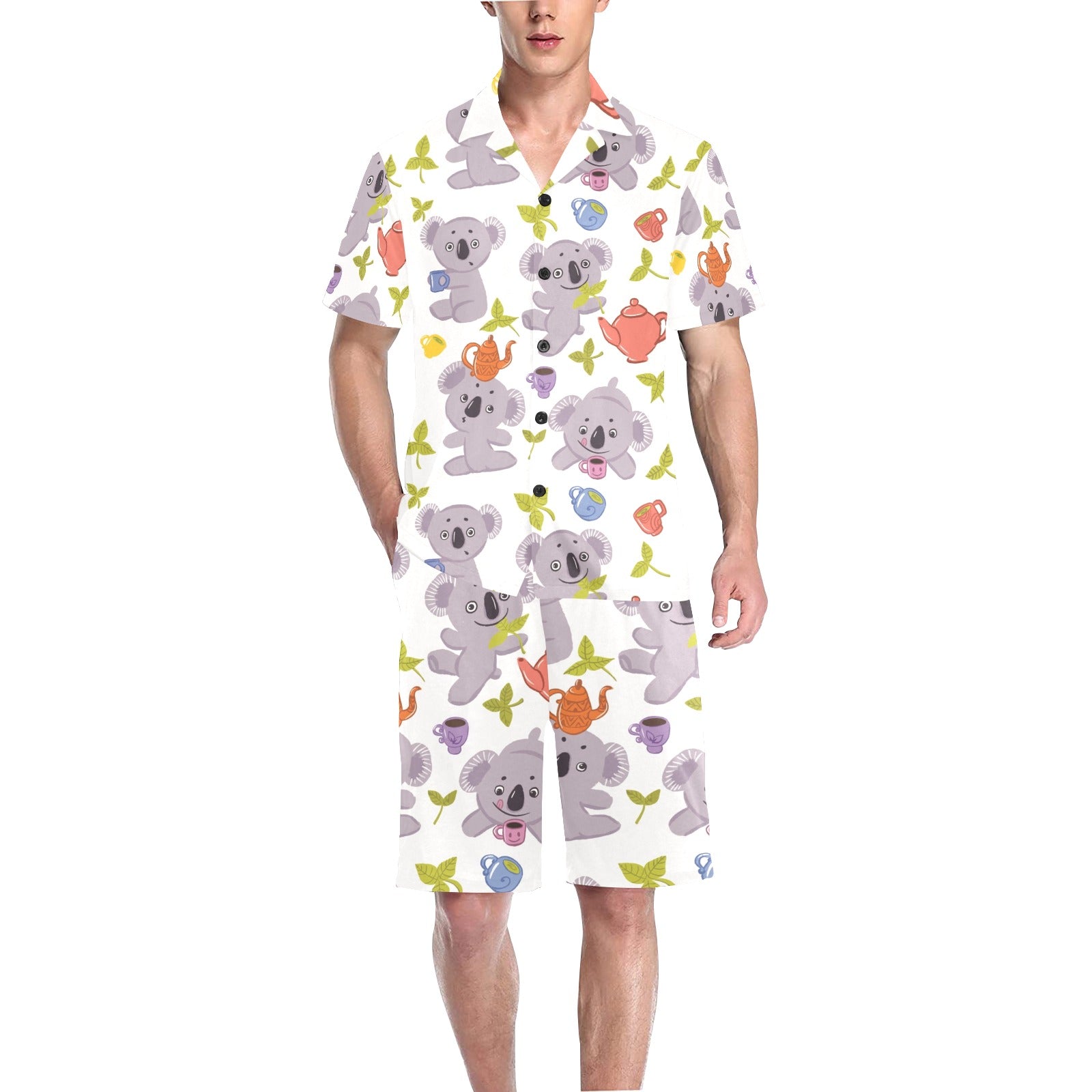 Cute koalas teapots tea Men's V-Neck Short Pajama Set