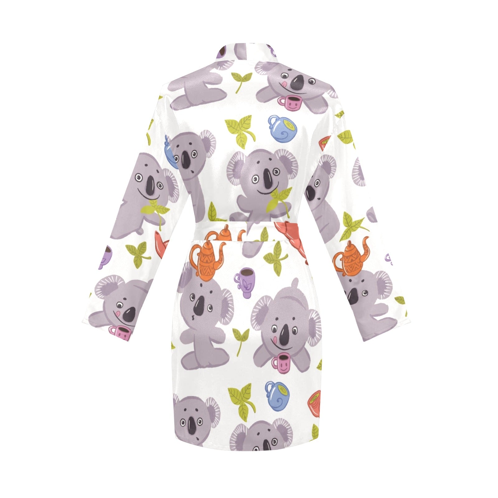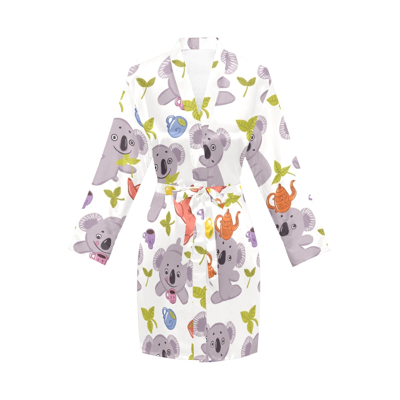 Cute koalas teapots tea Women's Long Sleeve Belted Night Robe