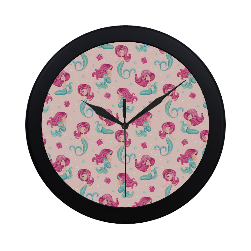 Cute little mermaid pattern Elegant Black Wall Clock