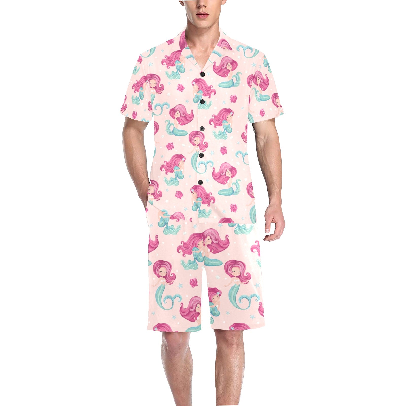 Cute little mermaid pattern Men's V-Neck Short Pajama Set