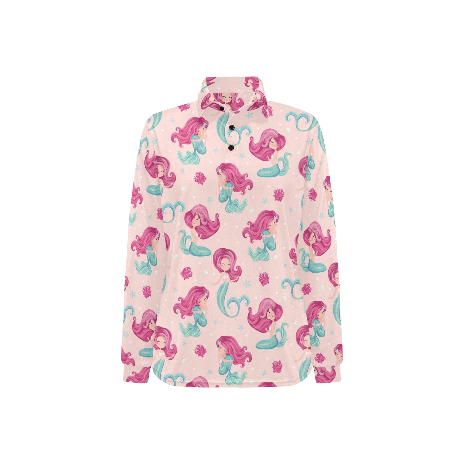 Cute little mermaid pattern Women's Long Sleeve Polo Shirt