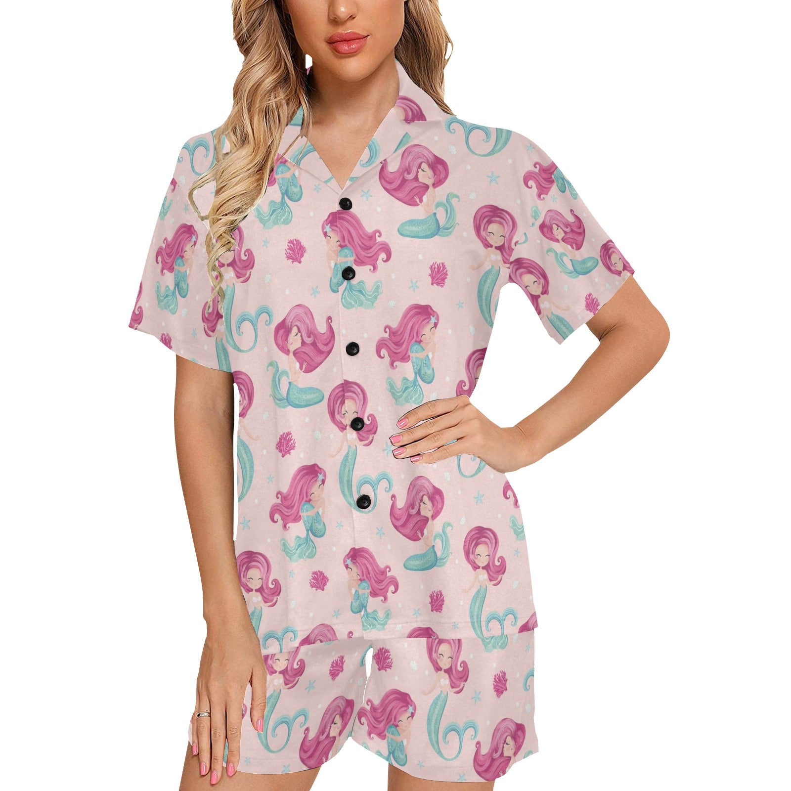 Cute little mermaid pattern Women's V-Neck Short Pajama Set