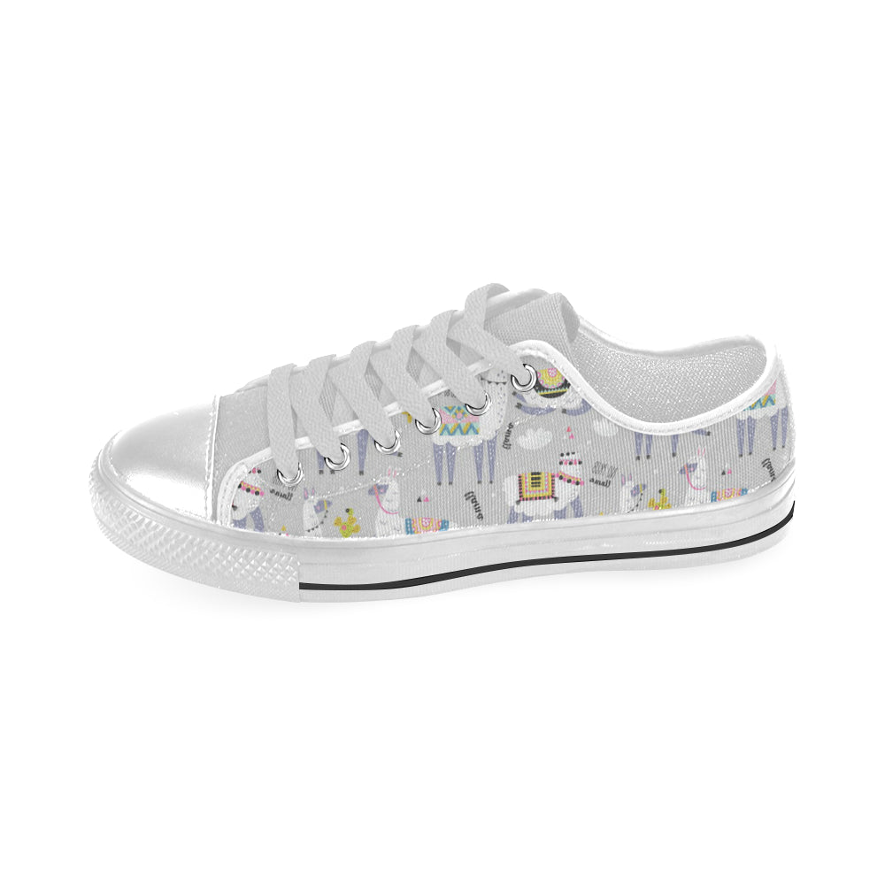 Cute Llama Alpaca pattern Men's Low Top Canvas Shoes White
