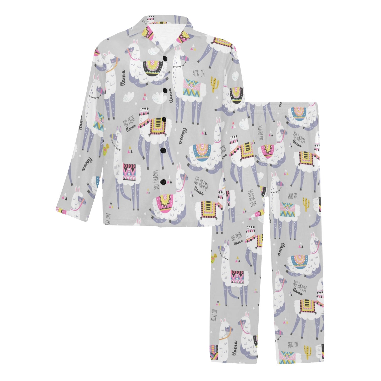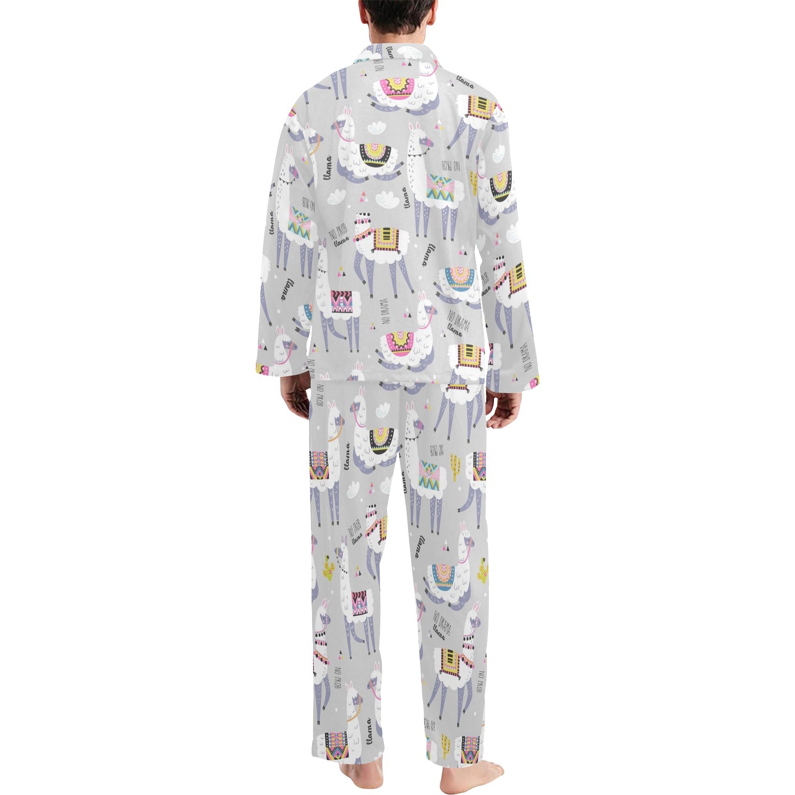 Cute Llama Alpaca pattern Men's Long Pajama Set